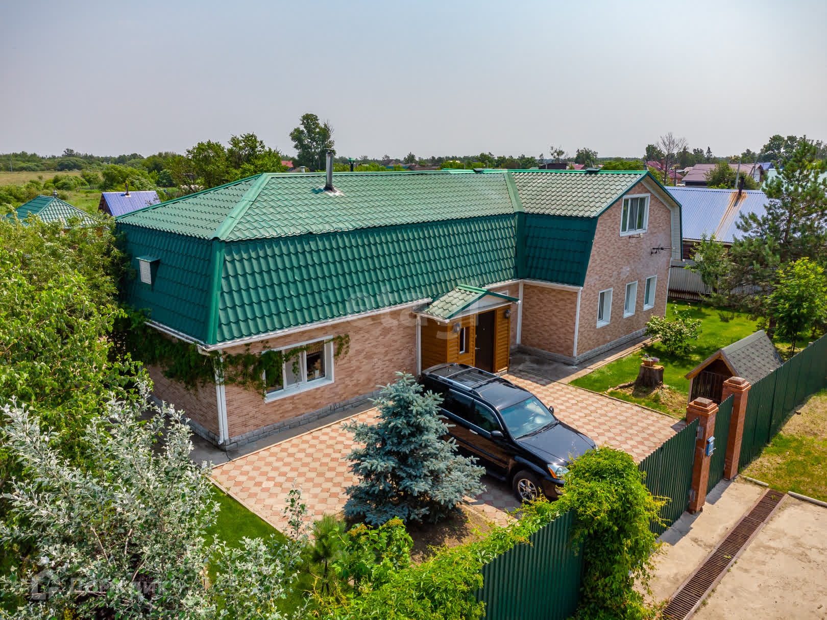 Интересный ландшафтный дизайн участка порадует любителей загородного отдыха. Двор и дорожки по участку выложены плиткой. Каменный водопад, коллекции хвойных и лиственных растений. Из плодовых – груши, яблони, слива, абрикос, ягодные кусты. Есть огород и теплица. Небольшой хозсарай.