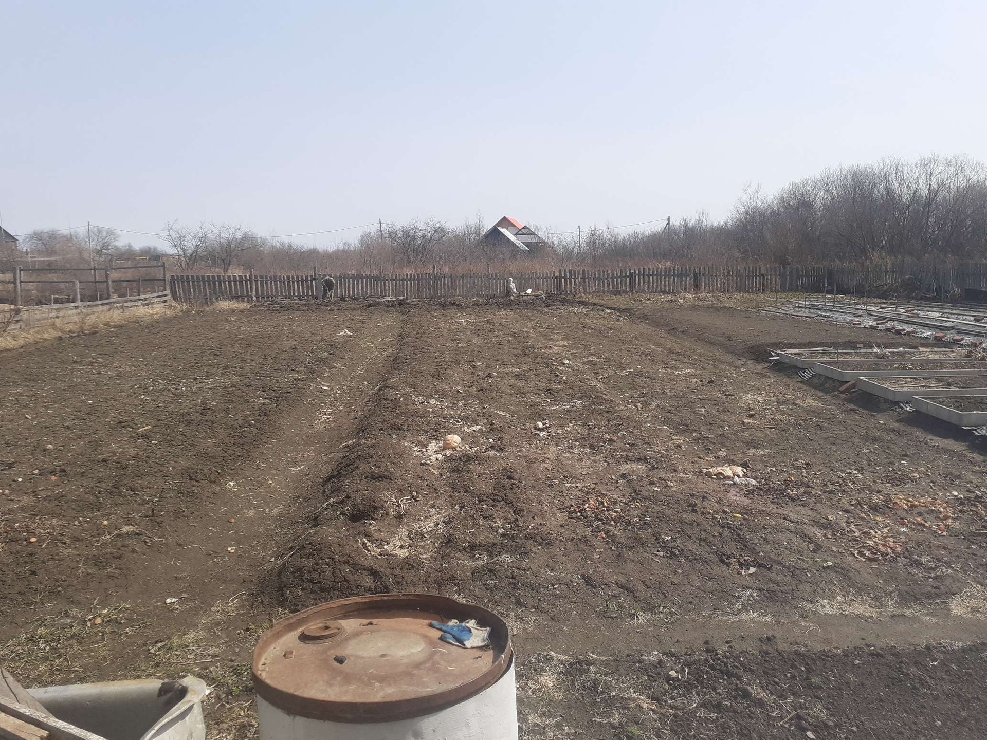 Земельный участок в собственности, разработан, ухожен. Множество плодово-ягодных насаждений: груша, яблоня, клубника, жимолость, персики, нектарины, черешня, смородина.