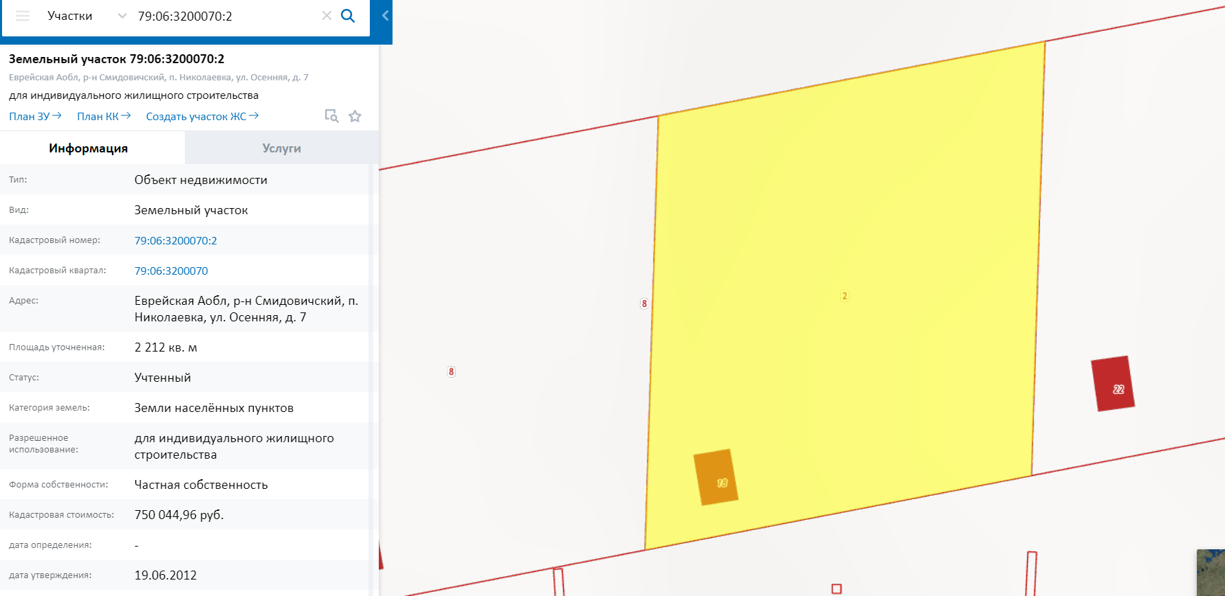 продам земельный участок 2212+/- 33 кв.м. в поселке Николаевка, ул. Осенняя 7. (номер 79:06:3200070:20), а также на участке имеются документы на недостроенный объект на 160 кв.м. (номер 79:06:3200070:18). можно строить что угодно инет необходимости получать разрешение на строительство. степень готовности 12%. кадастровая стоимость только одного участка 750 044,96 руб