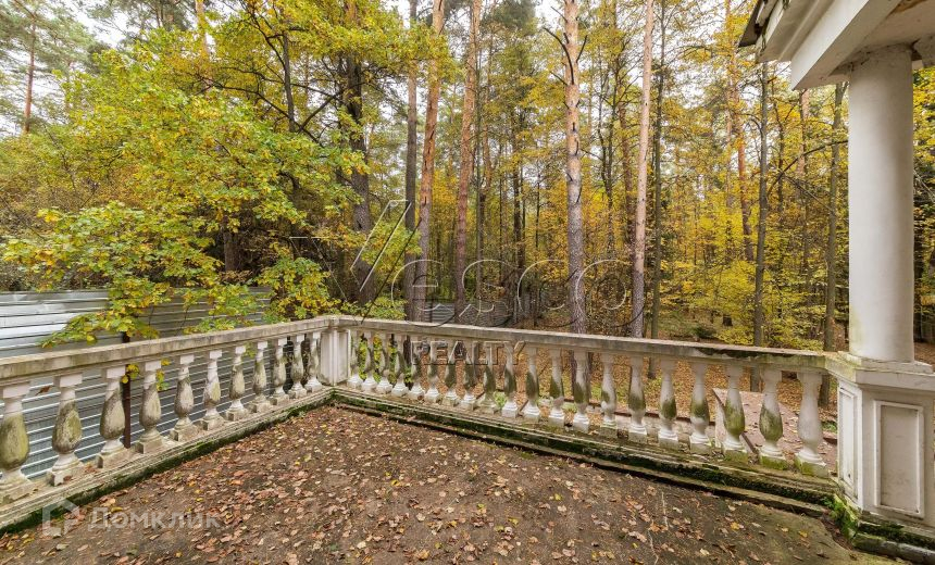 На лесном участке 30 соток расположен дом в классическом стиле. Участок находится на склоне Москвы-реки, из дома открывается прекрасный вид на лес и реку.