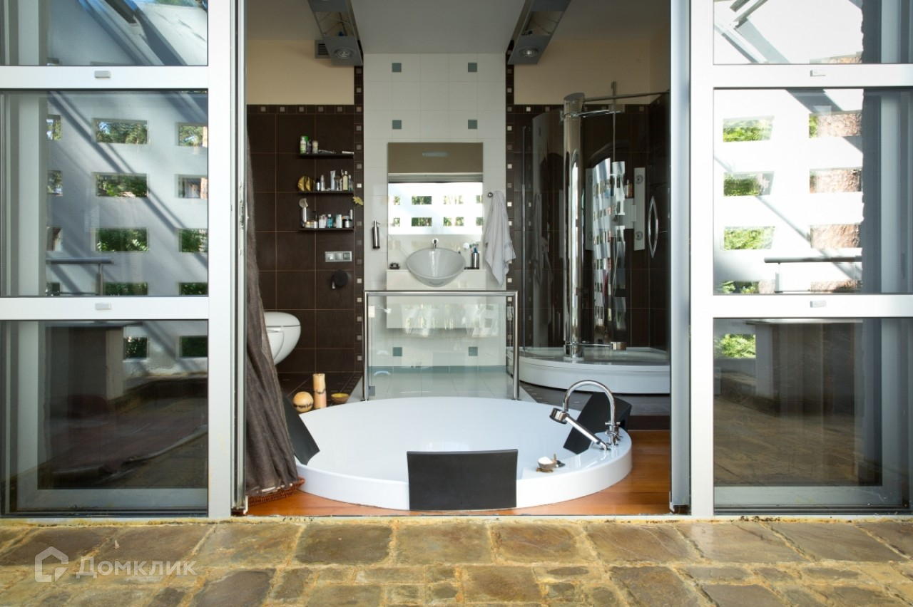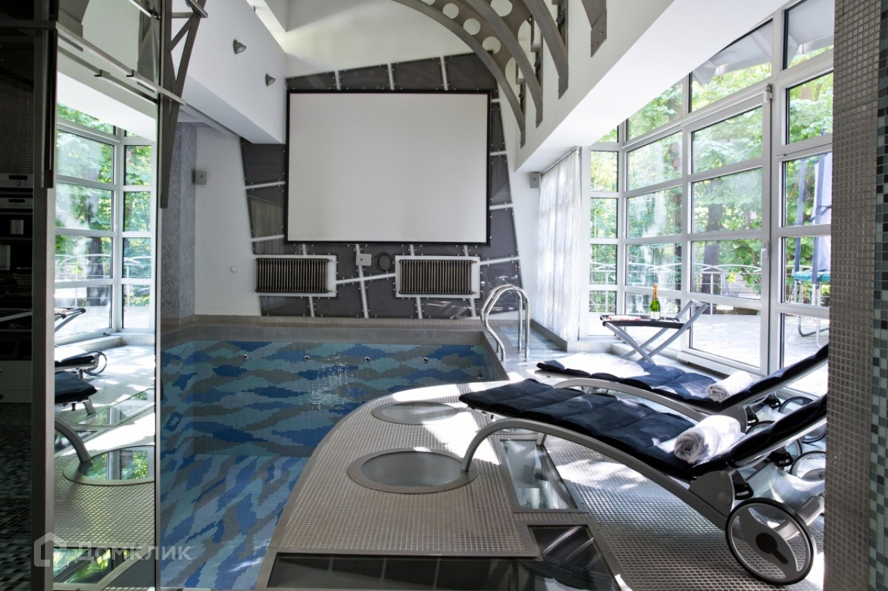 В доме 4 спальни со своими гардеробными и ванными комнатами. Все технические помещения на -1 этаже, достаточно зон для хранения вещей, продуктов и пр. Развлекательный комплекс 650 кв.м. полностью меблирован. Клубное помещение, оборудованное диско-светом, звуком, проектором. Кухня. Бар. Бильярдная комната. Боулинг с профессиональным оборудованием. Бассейн. Русская баня. Комната для отдыха. Игровая комната.