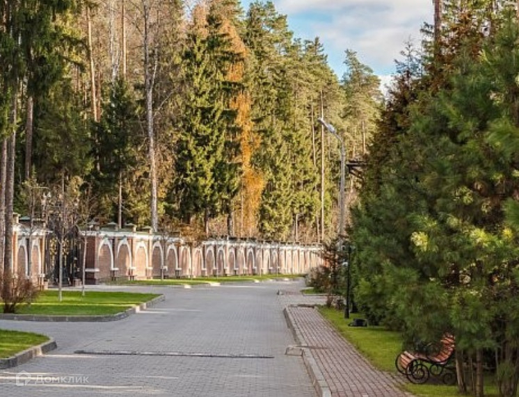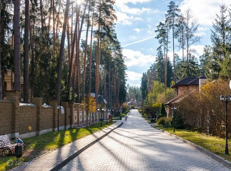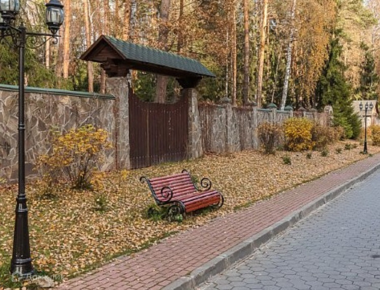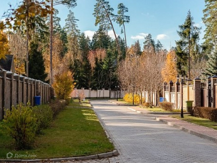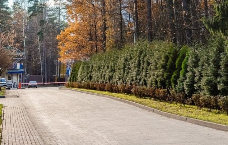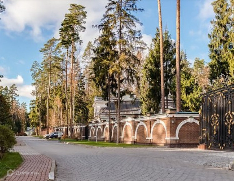 Два земельных участка площадью 1500 кв.м каждый, объединенных в один участок общей площадью 3000 кв.м, который обнесен забором, частично кирпичным с металлической ковкой, частично металлическим. Въезд на участок оборудован автоматическими въездными воротами. На территории участка расположен дом для охраны и деревянная беседка с печью для барбекю. На участке растут лесные деревья (сосны, ели), выложены каменные дорожки, сделан ландшафтный дизайн, протекает небольшой искусственный ручей, установлены фонари ночного освещения. Участок расположен на центральной аллее коттеджного поселка, примерно в 300 - 500 м. от центрального въезда на территорию.