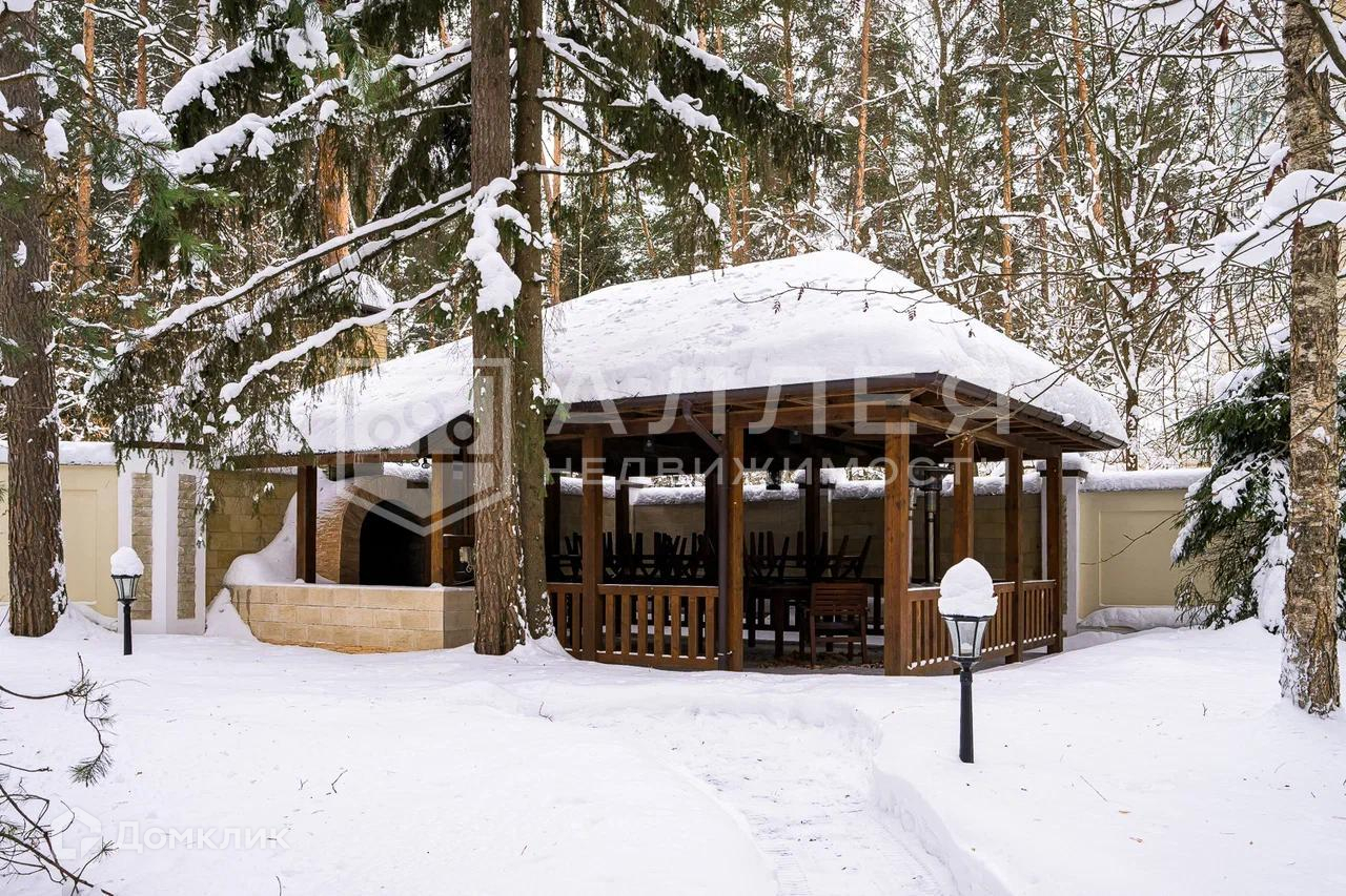 Участок: На участке выполнен ландшафтный дизайн с сохранением лесного массива. Деревья на участке преимущественно хвойные. Помимо основного дома построен дом для персонала с дополнительным гаражом. Обустроена беседка для отдыха с печью барбекю.
