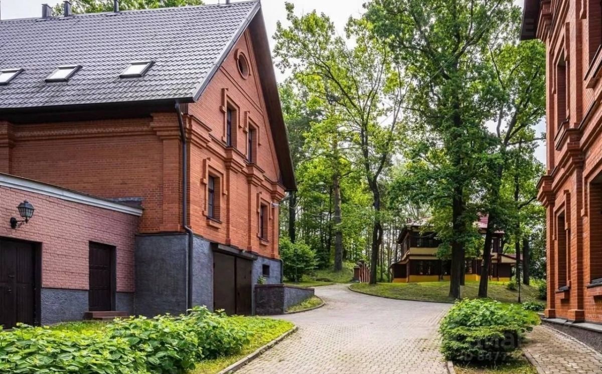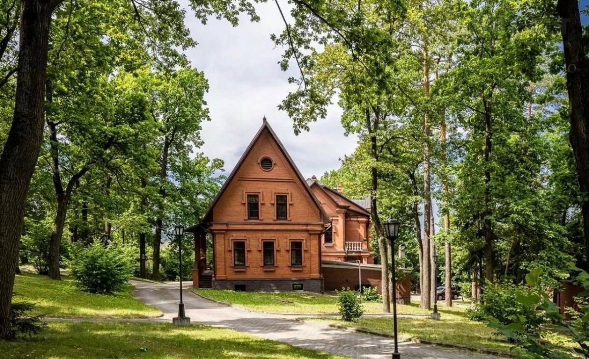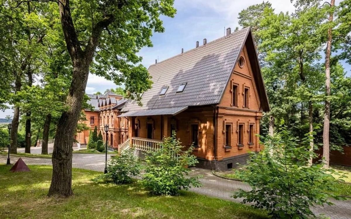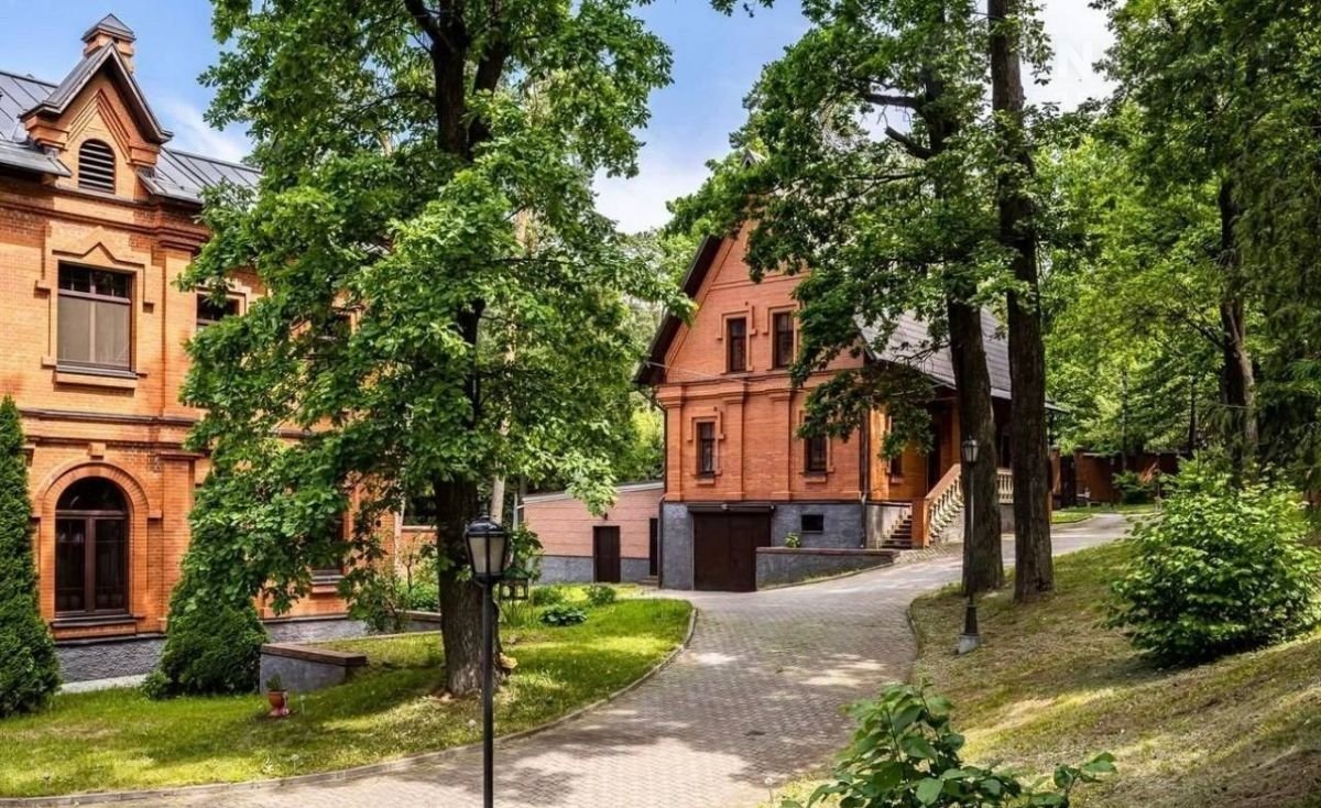 Особняк и дом для персонала выполнены в сдержанном аристократическом стиле из красного кирпича.