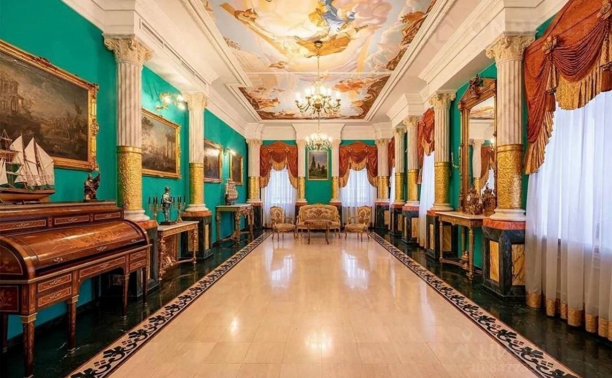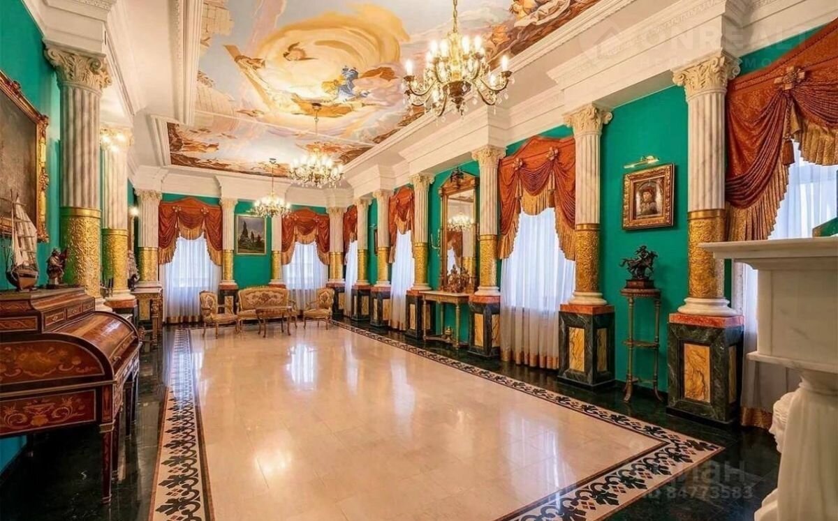 Колонны особняка покрыты сусальным золотом.