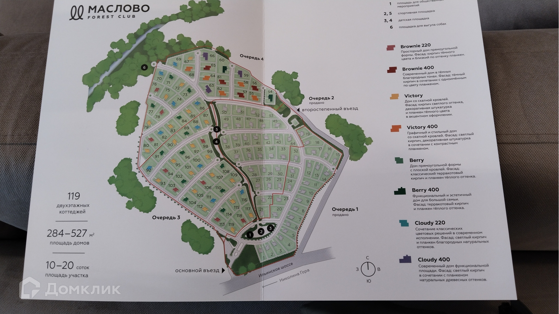 Дома в поселке  отличает простая геометрия, работа с естественным освещением внутри и использование нейтральных, природных оттенков и фактур снаружи. Основные фасадные материалы   кирпич ручной формовки и натуральное дерево, они долго сохраняют эстетические свойства в нашем климате.  Планировки коттеджей позволят воплотить любой дизайн-проект, представлены форматы с возможностью установки камина и видовыми террасами, а также дома с тремя спальнями и увеличенным количеством окон. По дополнительному запросу застройщик может выполнить полную отделку  под ключ , Вам не нужно тратить время и силы на ремонт. Предусмотрена установка сантехники и кухонных гарнитуров от известных европейских брендов, монтаж систем кондиционирования и укладка  теплого пола .