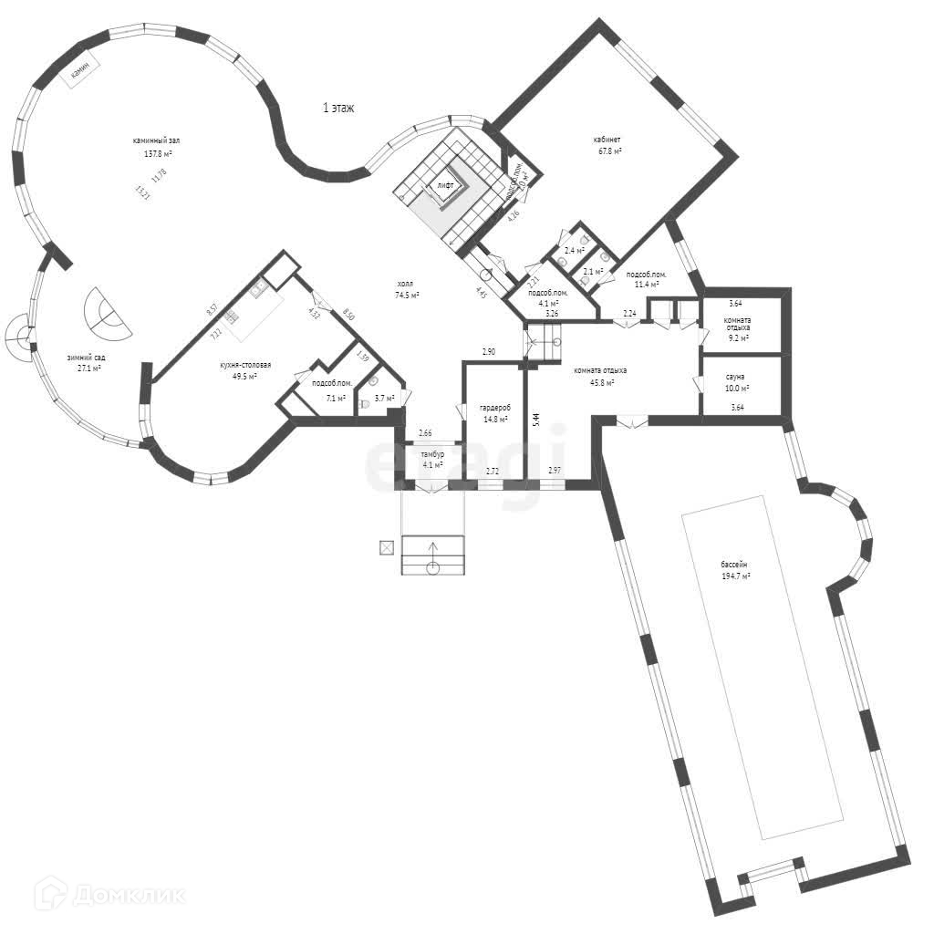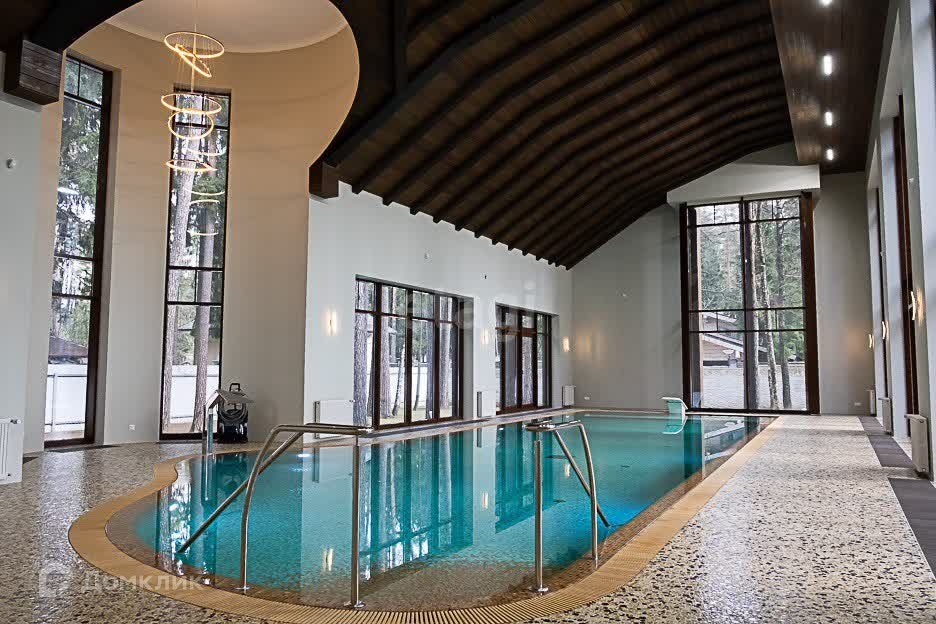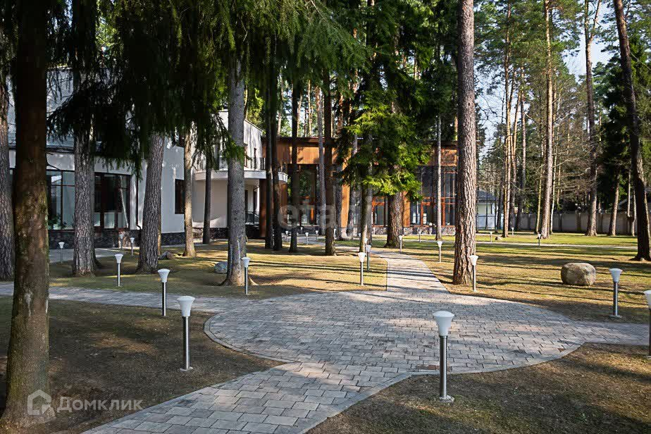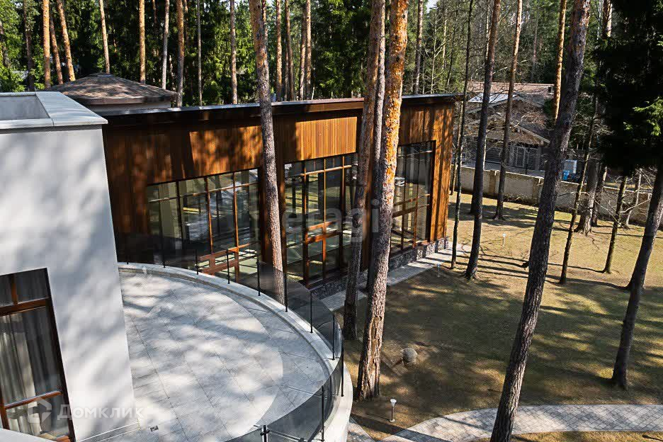 Вашему вниманию представлен участок 60 соток с более чем 80 столетними соснами, не считая дубов и прочих деревьев. Дом снаружи кажется двухэтажным, хотя лифт из подвала на крышу поднимается на 4 уровня. Общая площадь трех строений на участке – 2400 м2 , из которых главный дом составляет 1700 м2 с бассейном 17 метров длиной и оборудованной по последнему слову техники сауной, а также два дополнительных дома с гаражом на 3 машины и четырьмя квартирами для обслуживающего персонала и охраны.