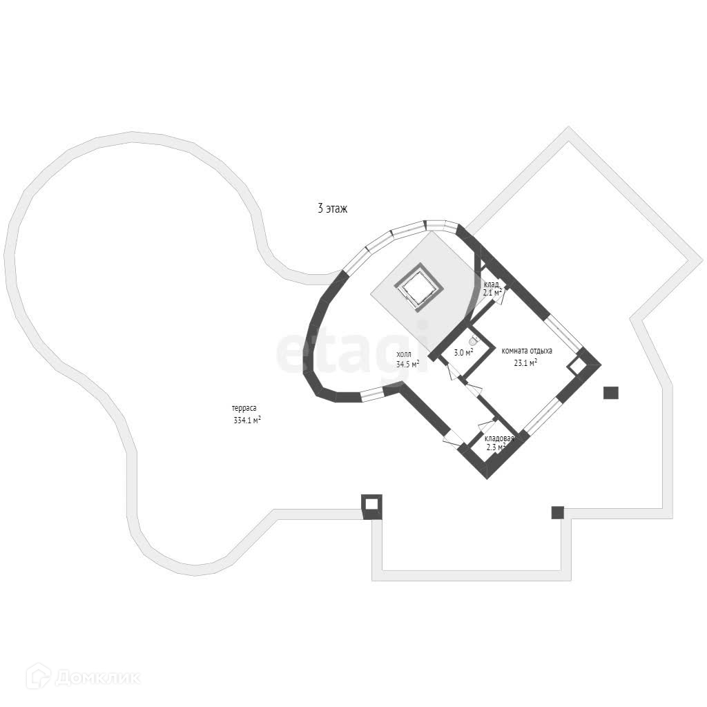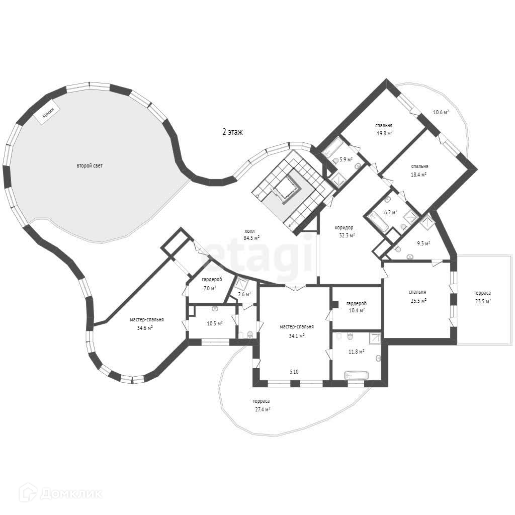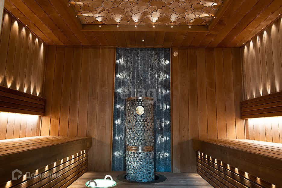 В доме пять спален с просторными верандами, большая двухсветная гостиная с камином и зимним садом, используемая панорамная крыша площадью 400 м2, а также подвальные помещения с предусмотренным кинозалом и фитнес-залом, плюс технические помещения – постирочная, гладильная, помещения для складских и прочих нужд, отдыха персонала. Всего во всех трех зданиях насчитывается 12 полностью оборудованных санузлов.