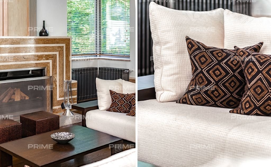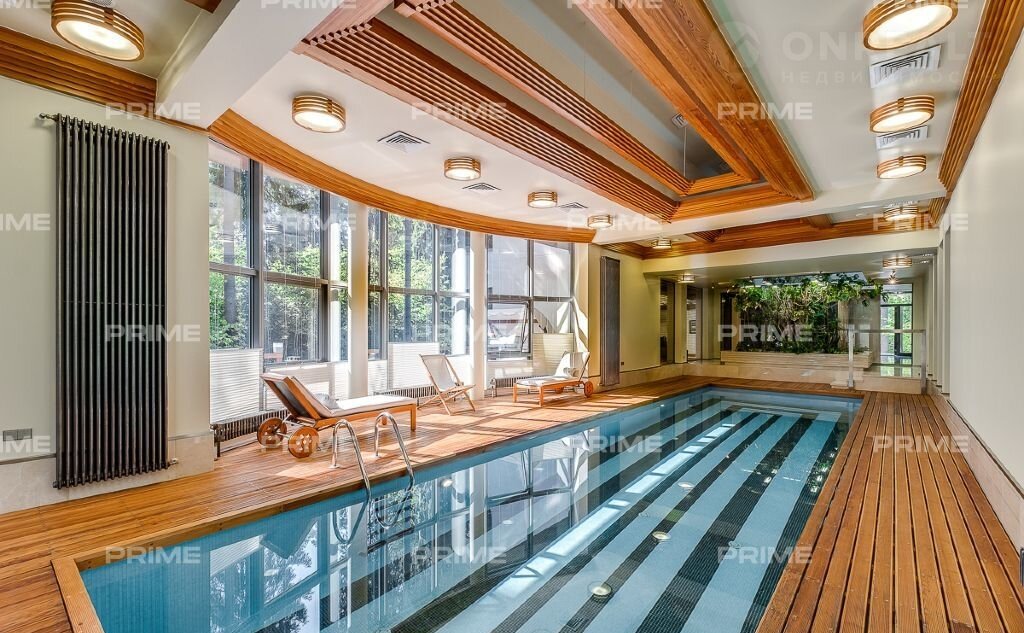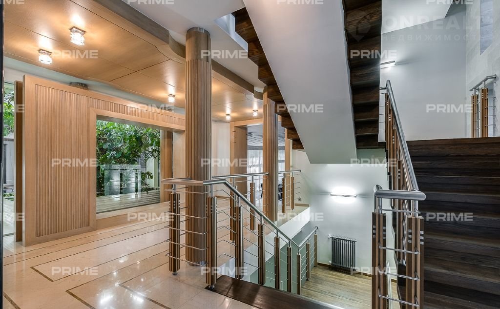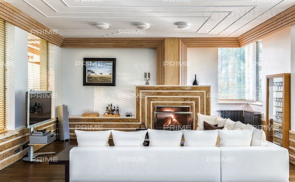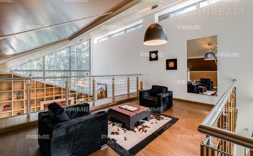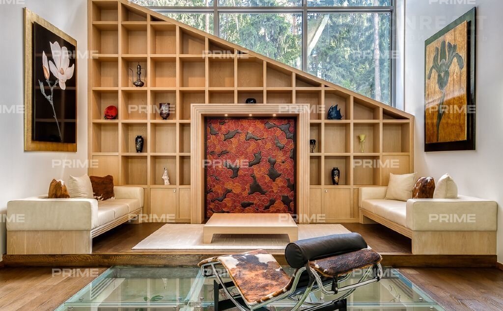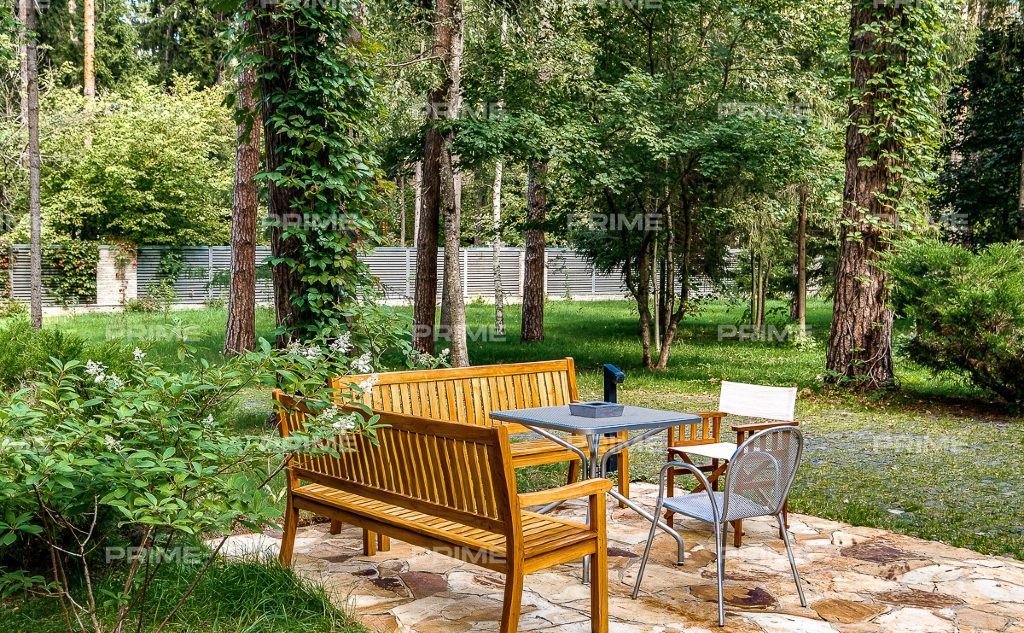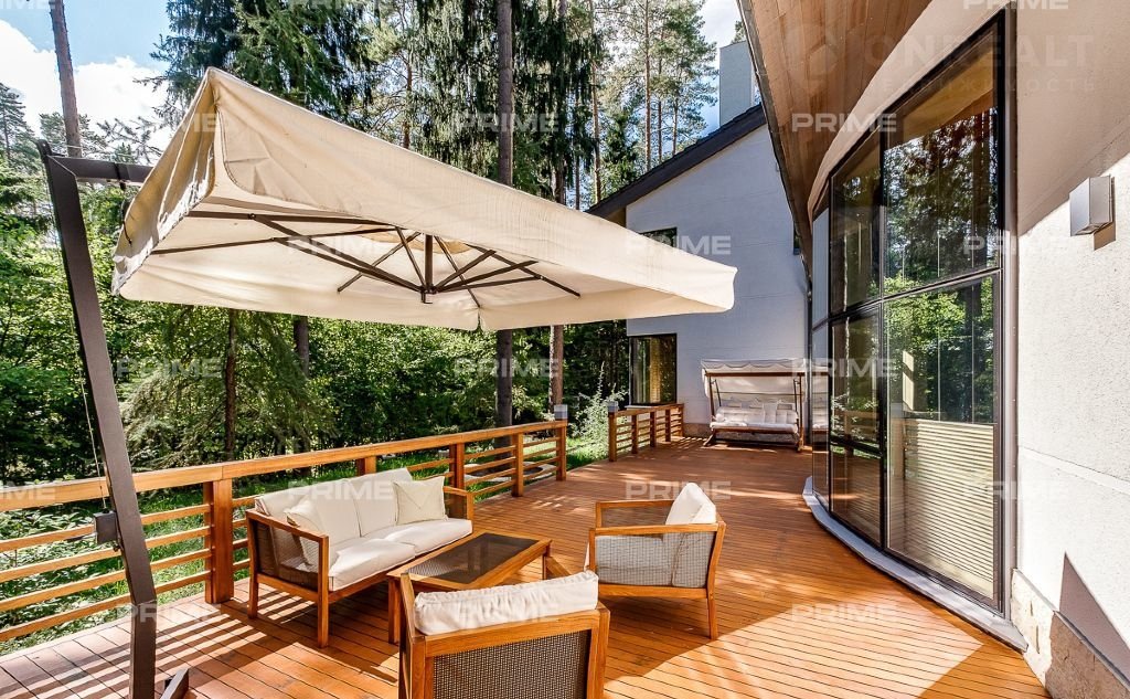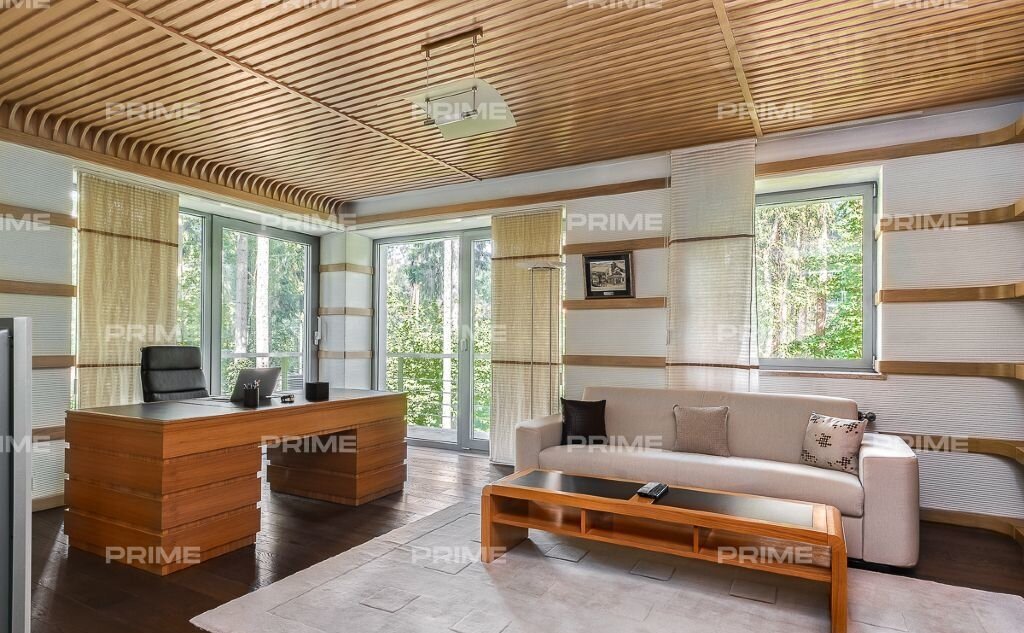 На территории участка выполнен ландшафтный дизайн с подсветкой, дорожками и системой полива. Интерьеры дома стремятся объединить внутреннее пространство и окружающий сосновый бор. Дом предлагается с дизайнерской отделкой "под ключ" и мебелью. В помещении 2 этажа, 3 спальни, гостиная с камином, аквазона с бассейном, сауной и зоной отдыха, зимний сад, а также квартира для персонала.