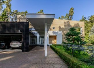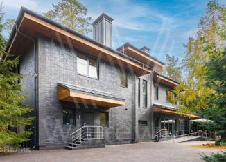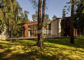 ID 12 418. Сосновый Бор. Загородный особняк площадью 1800 м² построен на просторном участке 60 соток с лесными деревьями. Фасад здания выполнен в современном стиле, облицован белой штукатуркой, вертикальными досками и имитацией каменной кладки. Дом полностью отделан с использованием премиальных материалов. Планировка резиденции включает 5 спален, каминны... |