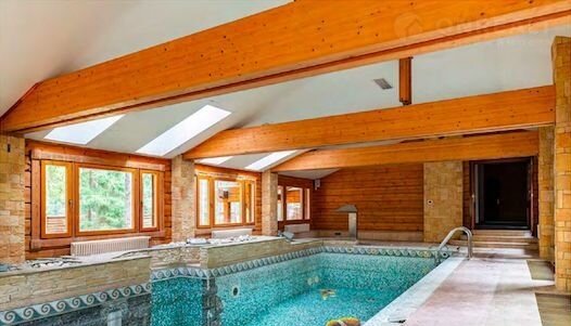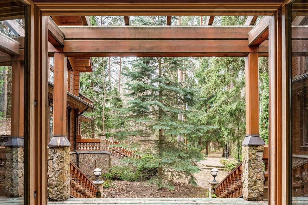 На участке расположен дом площадью 1 175,7 кв.м, выполнен из натурального соснового бруса с применением высококачественных технологий НОNКА по индивидуальному проекту. В доме высокие потолки, большие окна и дровяной камин с открытой топкой. Планировочное решение включает: двухсветную гостиную, кухню, 4 спальни, 5 ванных комнат, кабинет, тренажерный зал, зону SРА с бассейном, кинозал и сервисные помещения.