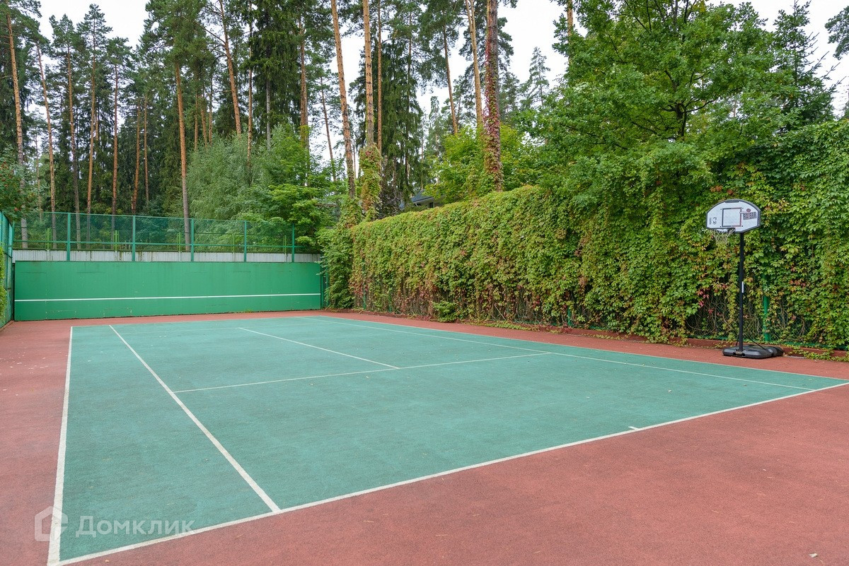 На территории участка расположены: парковка на 4 машины, летний теннисный корт, два фонтана, беседка для барбекю, детская площадка, деревянная русская баня с двумя гостевыми спальнями и кухней, отапливаемая теплица, пруд, хоз.дворик.
