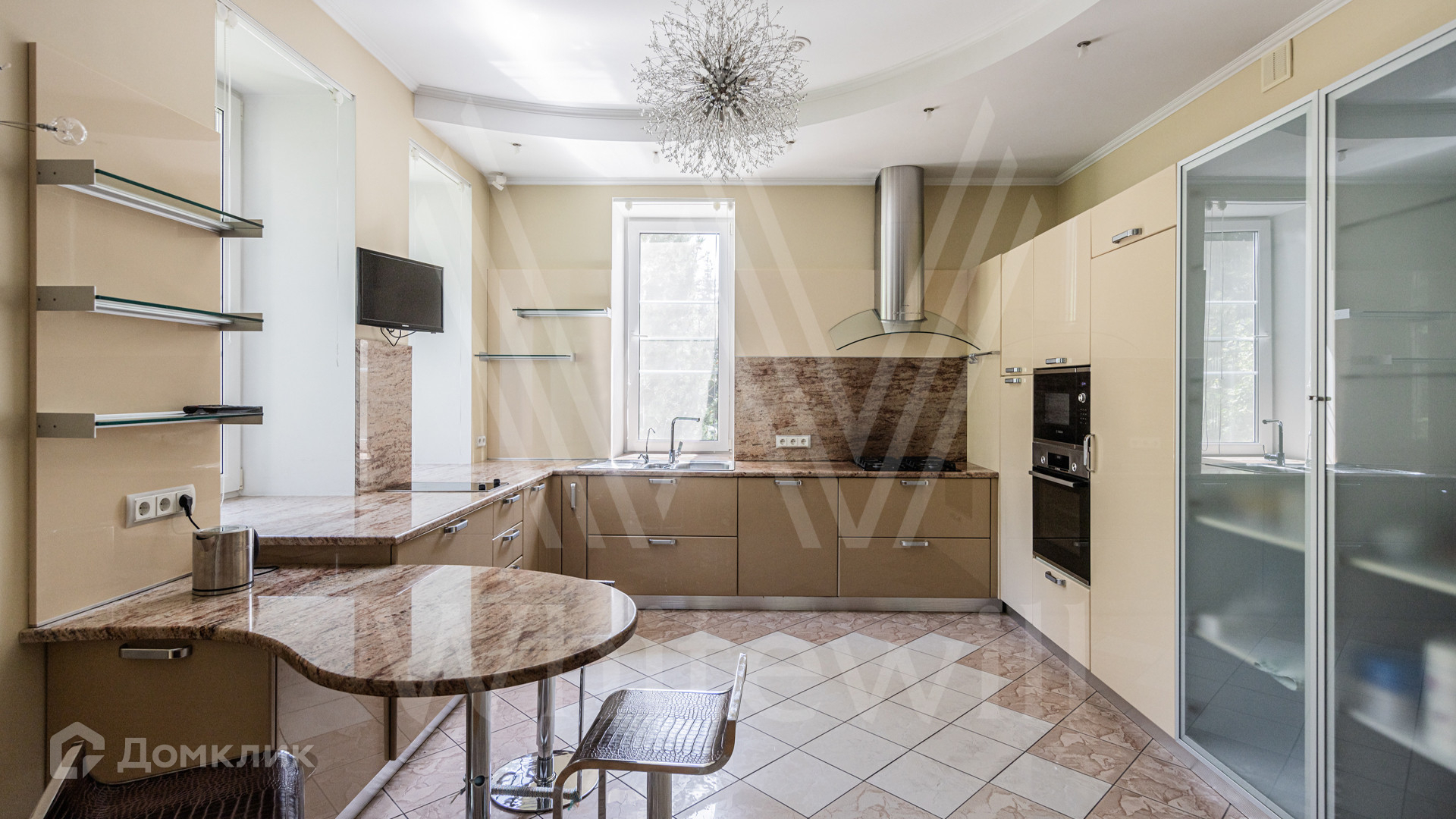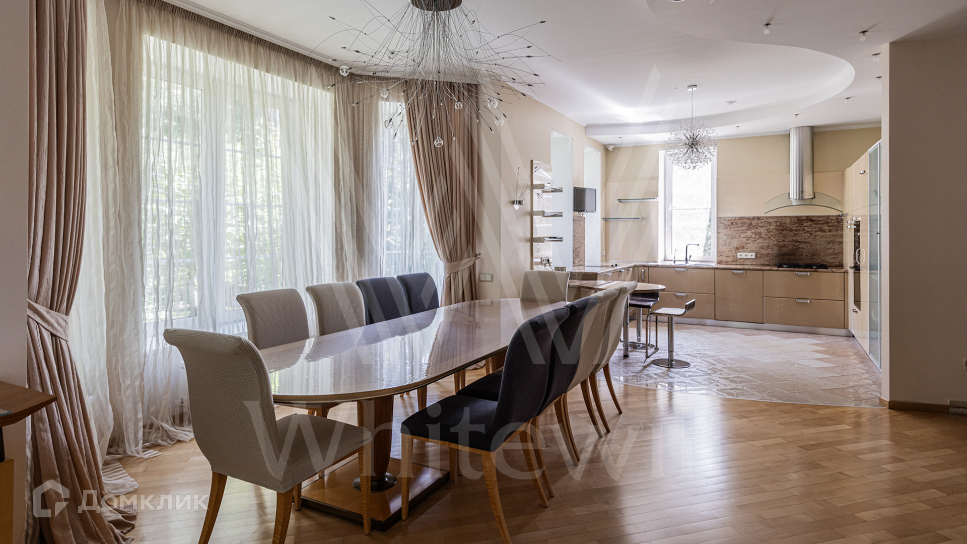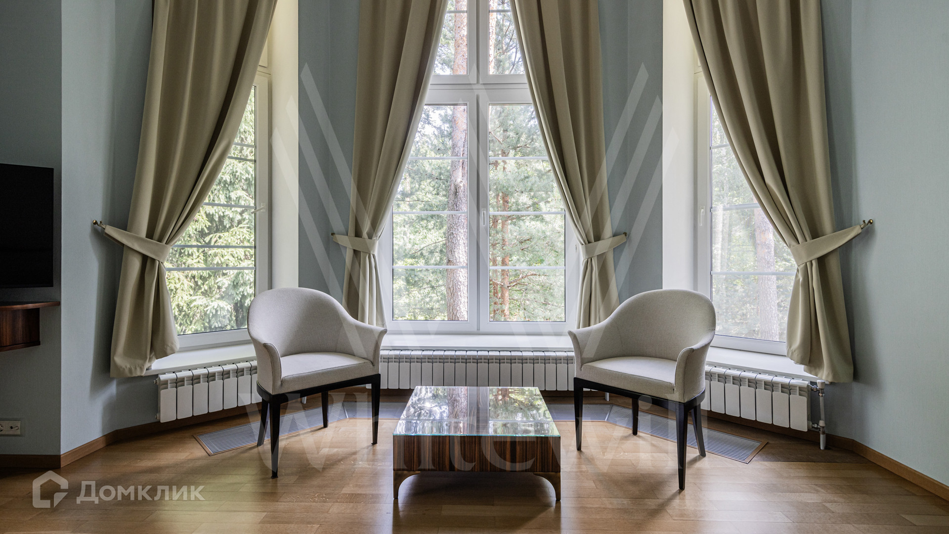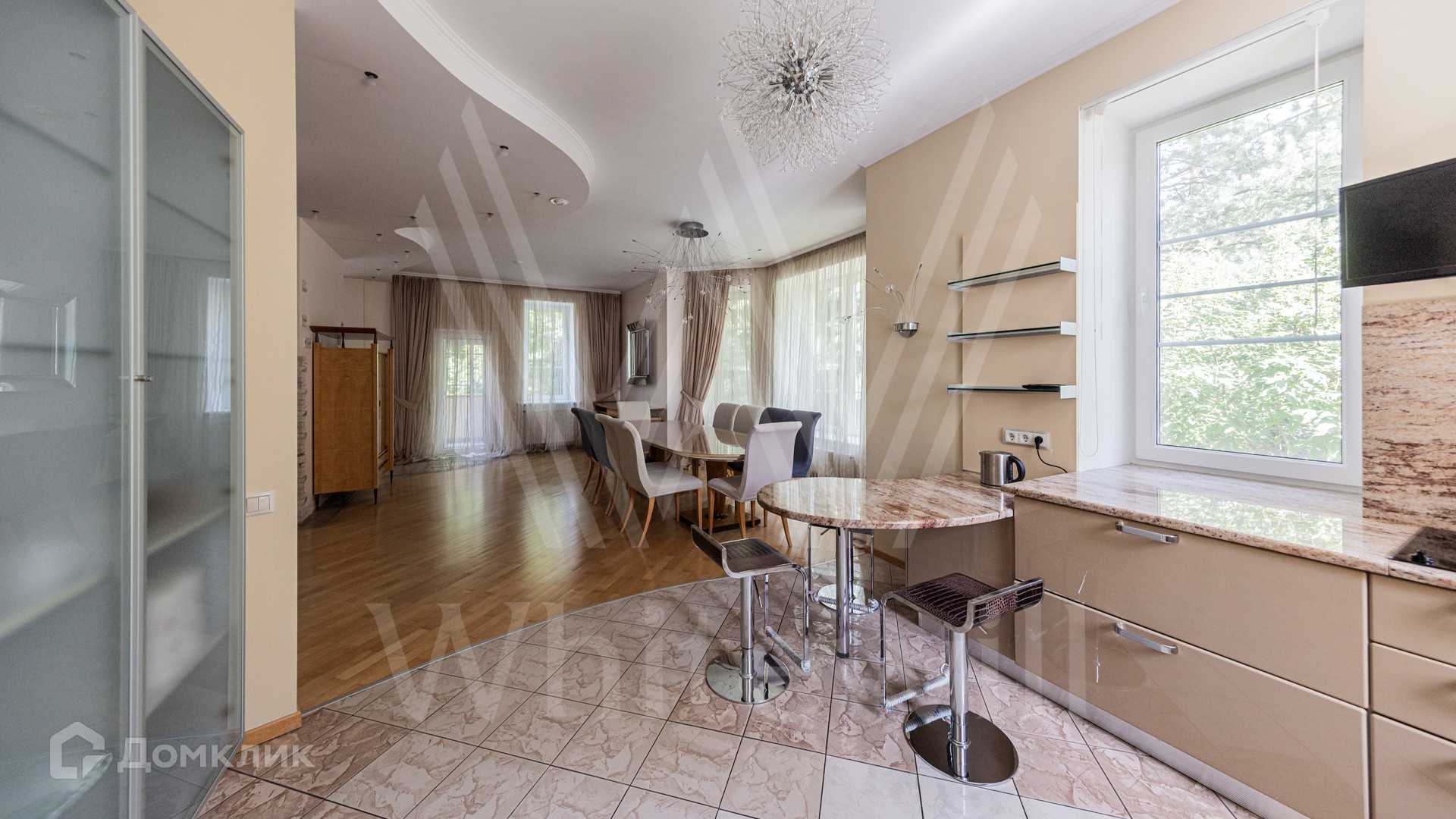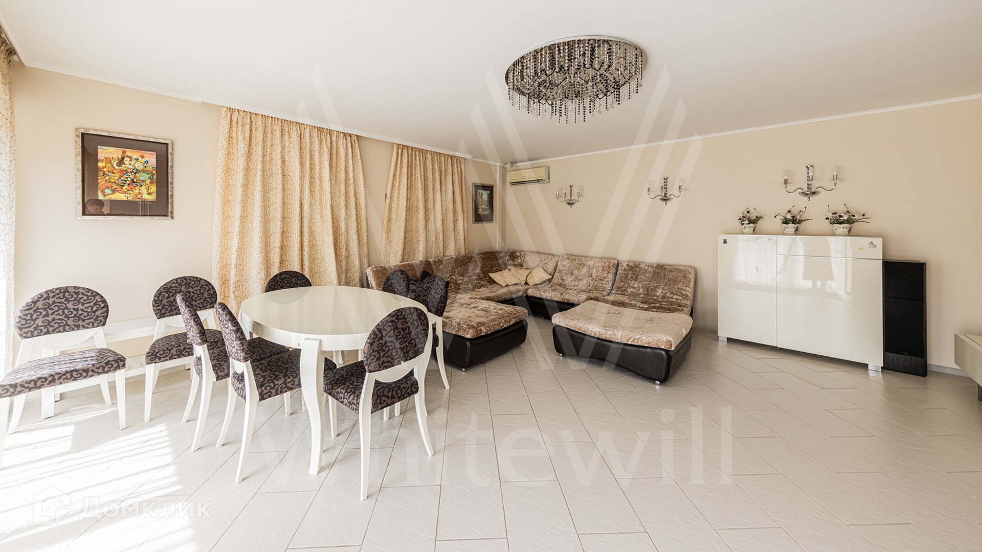ID 12 349. Коттон Вэй (Никологорское). Загородный дом площадью 450 м² расположен на просторном участке 30 соток с многолетними соснами. Фасад здания облицован бежевым клинкерным кирпичом и декорирован молочными вставками. В отделке светлого интерьера преобладают теплые оттенки, создающие атмосферу уюта. Планировка резиденции включает 5 спален, гостиную с камином, кухню, игровую, кабинет, спортзал с балетной стойкой, кинозал, сауну, джакузи и комнату отдыха. Предусмотрен гараж на 2 машины. На участке выполнен ландшафтный дизайн, засеян газон, вымощены дорожки и обустроены беседка с зоной барбекю и детская площадка.