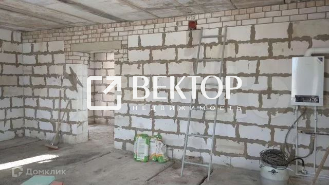 Стены выполнены из газосиликатных блоков 400мм, облицованные керамическим кирпичем .