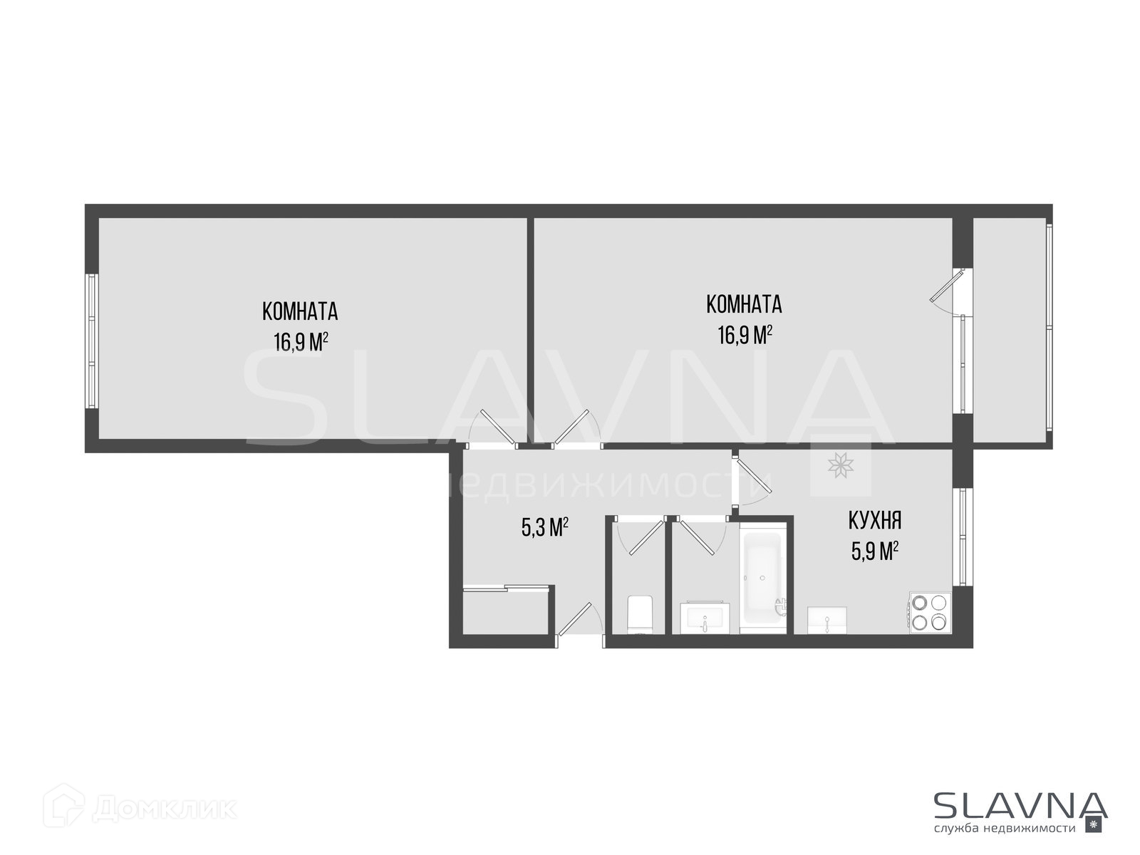 Две одинаково большие комнаты.