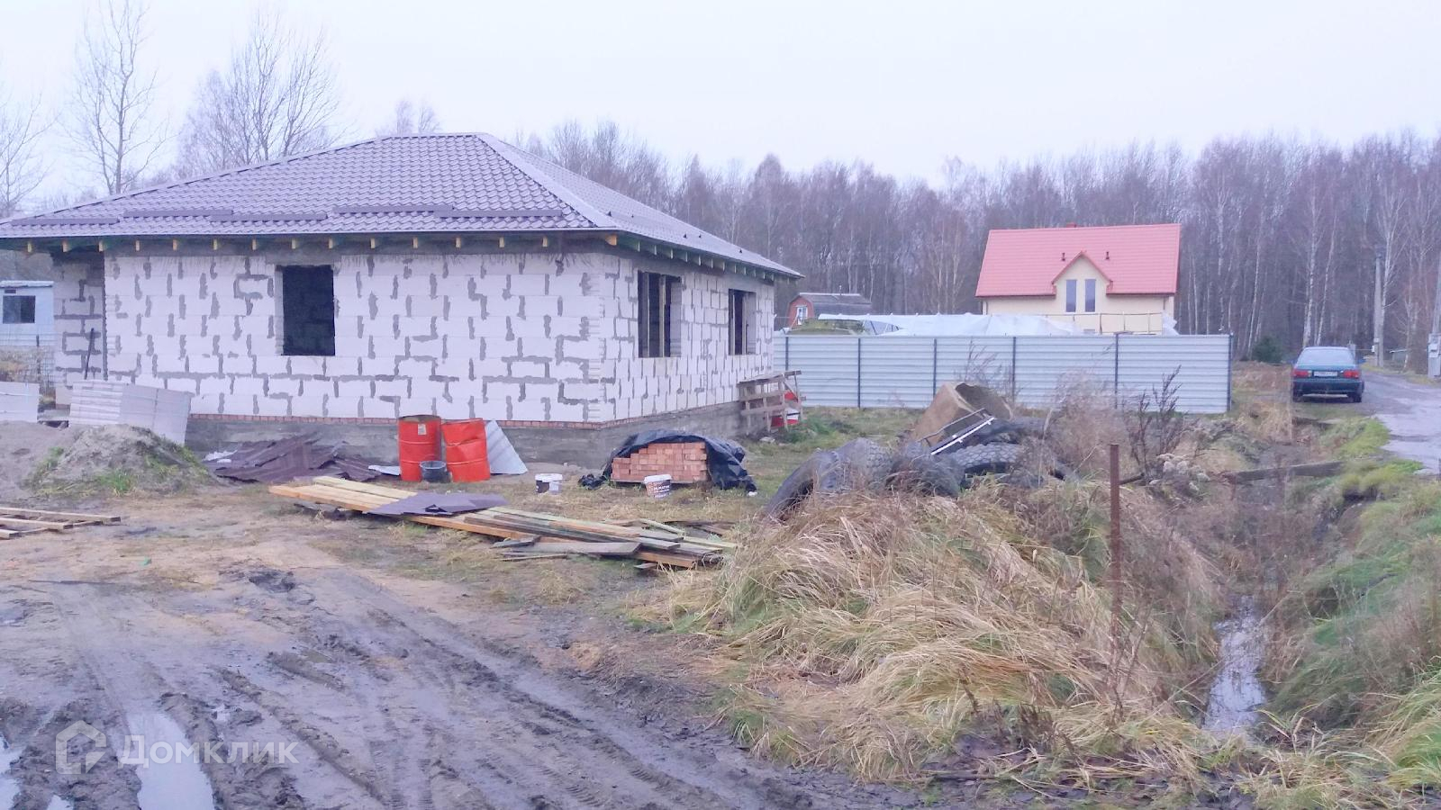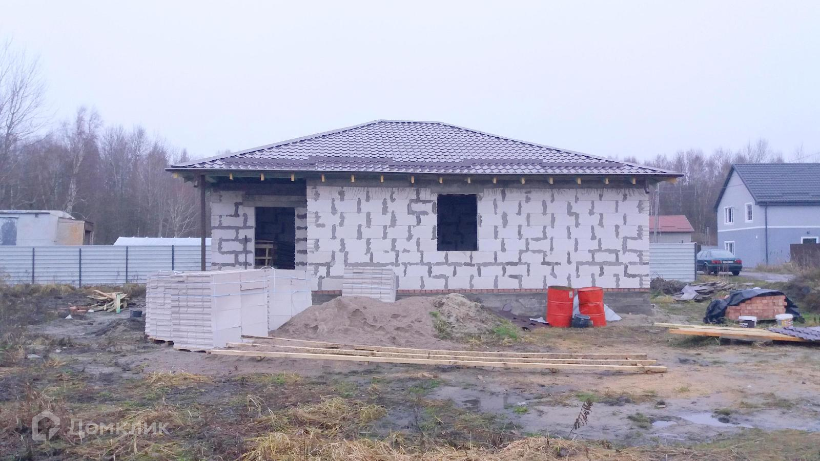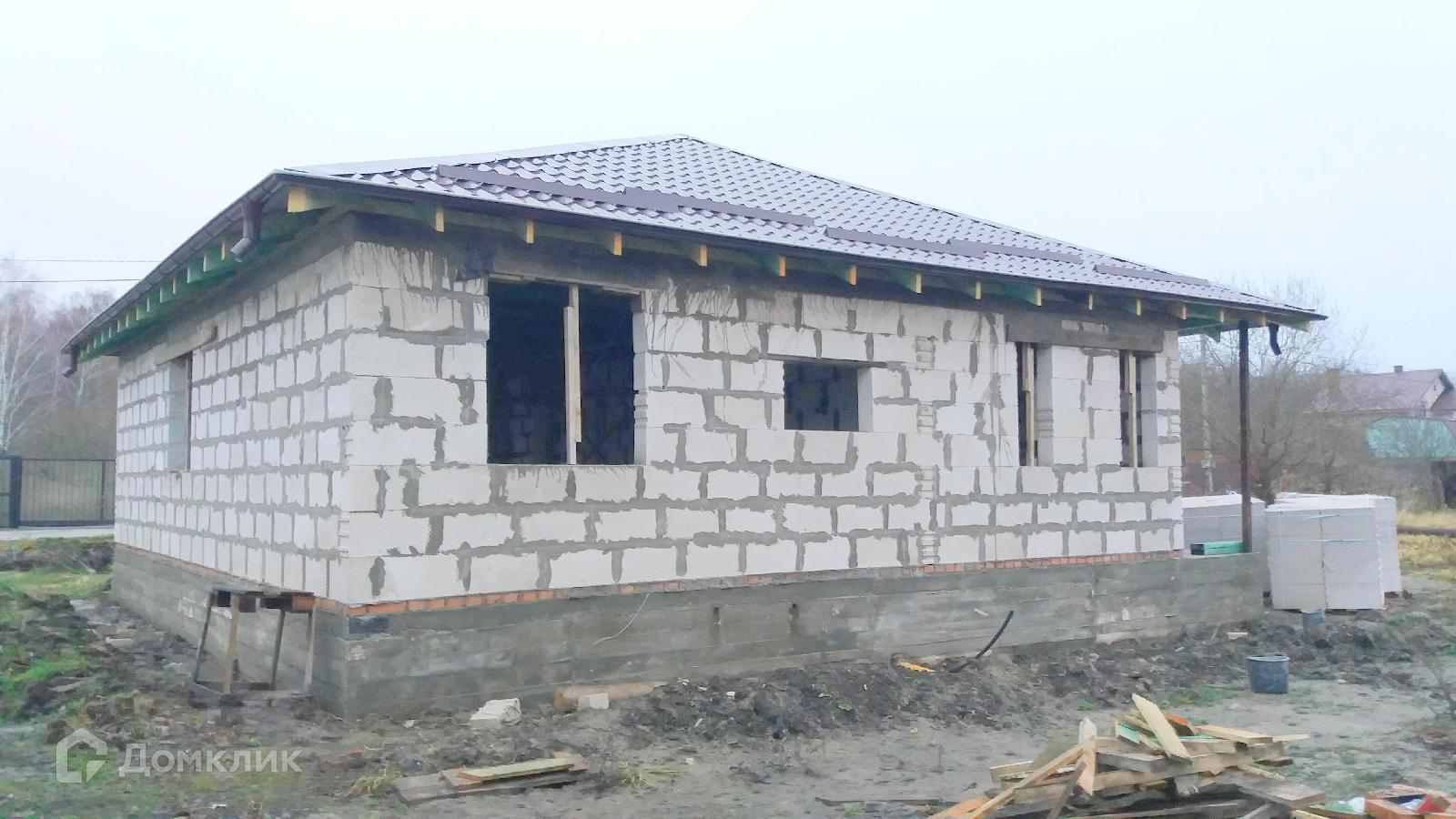 Общая площадь — 100 м², свободная планировка, коммуникации введены. Перегородочные блоки в подарок. По проекту в доме: 3 изолированные спальни, большая кухня-гостиная, котельная, санузел.