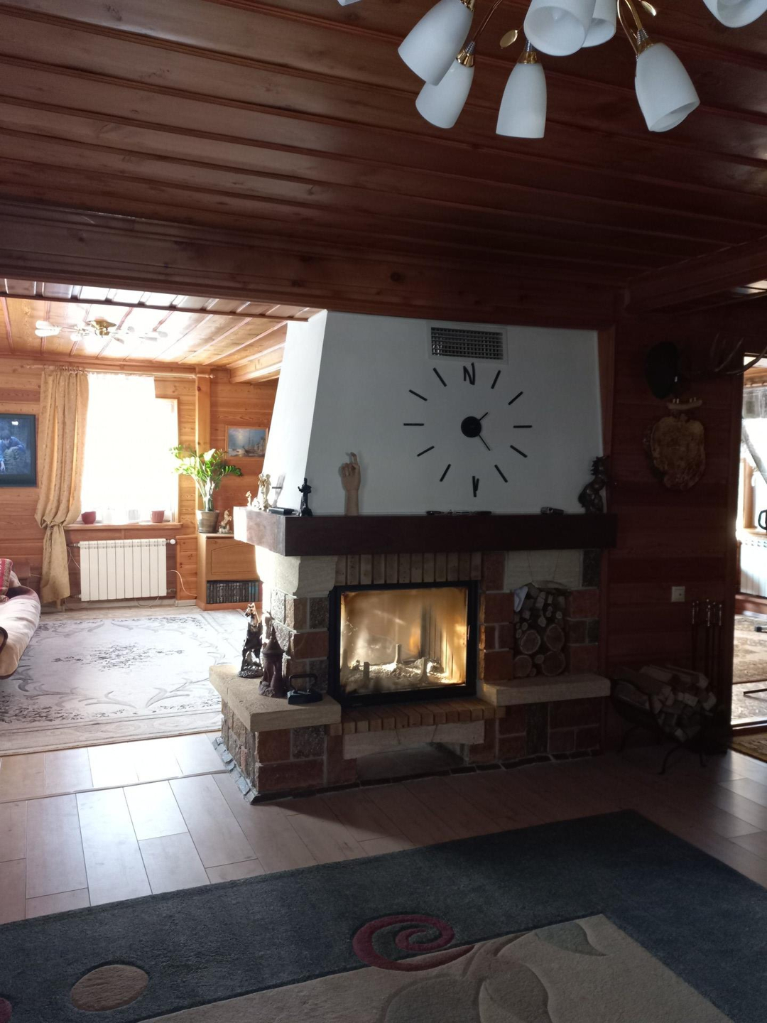 В доме сауна,  камин, два санузла ( один с душевой кабинкой,  второй-с ванной), 4 спальни : три на втором этаже и одна на первом.
