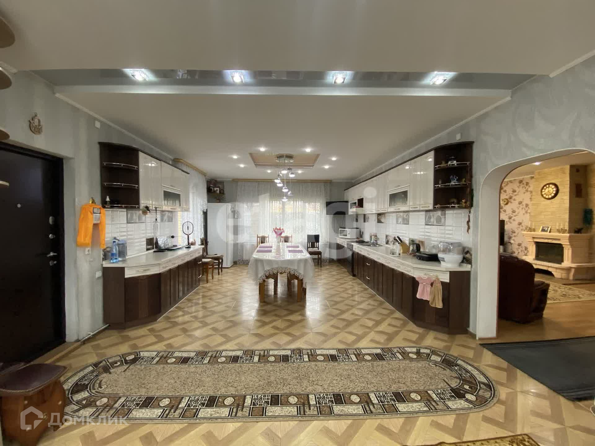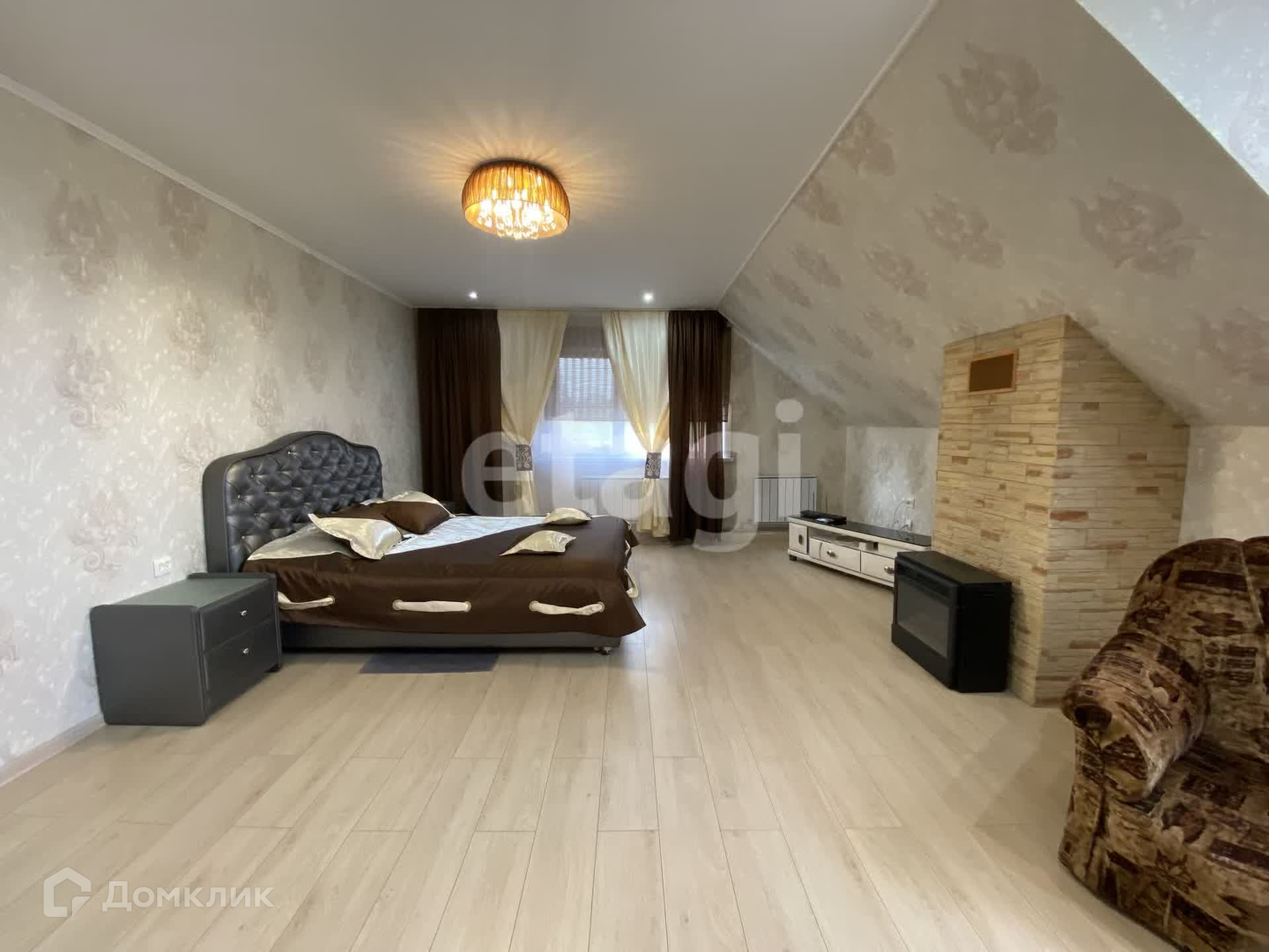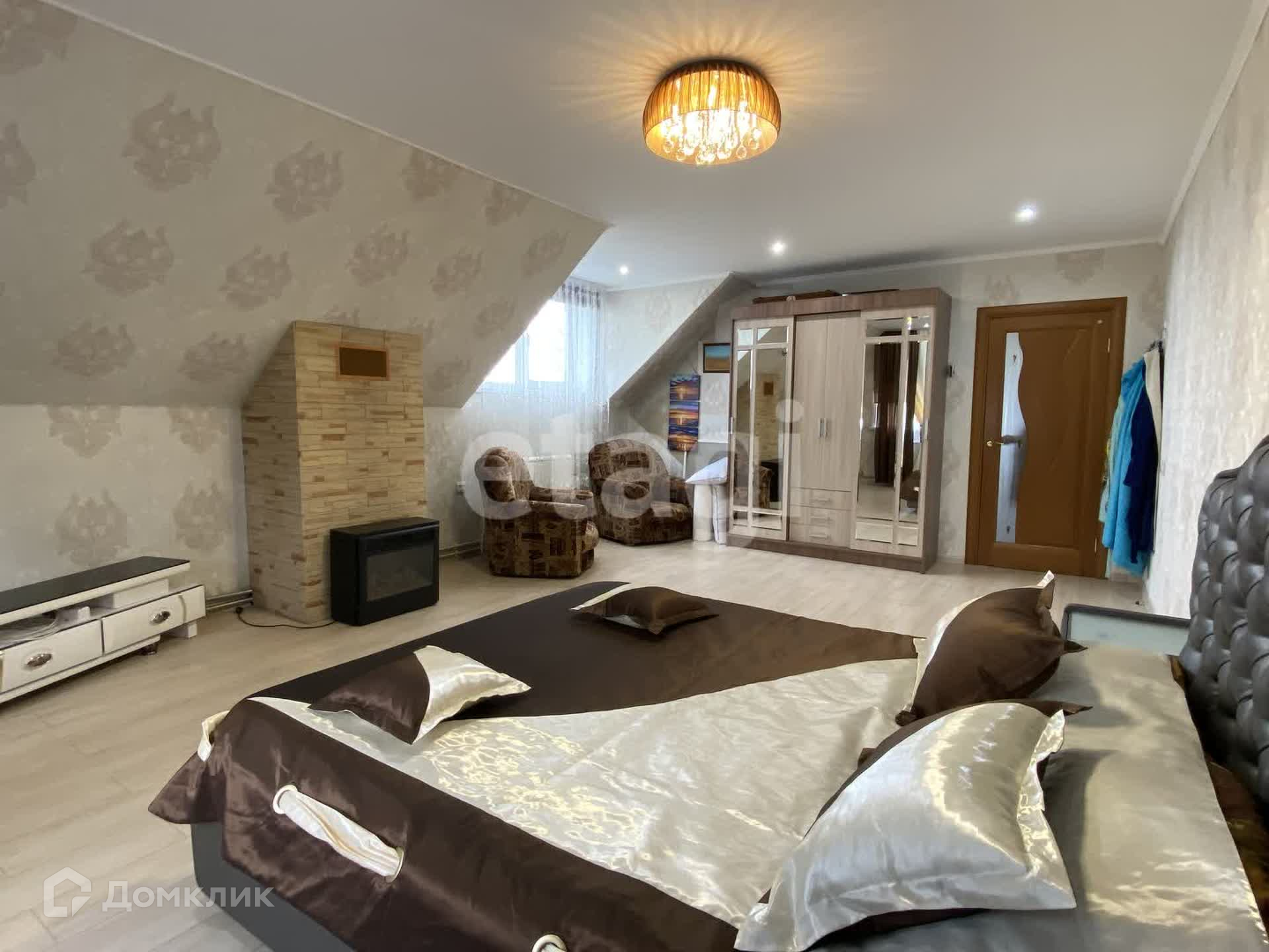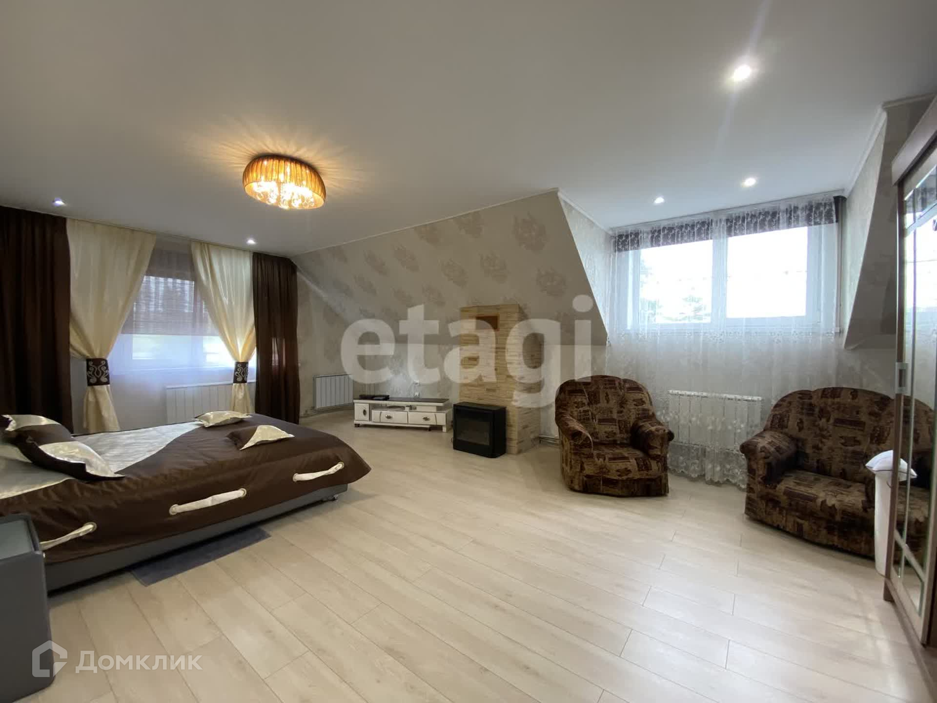 Дом двухэтажный брусовой утепленный, площадью 261,3 м2. На первом этаже: просторная гостиная, кухня, санузел. На втором этаже три спальни и совмещенный санузел. В каждой комнате установлены радиаторы, стеклопакеты, напольное покрытие — ламинат, натяжные потолки. К дому пристроен гараж на два авто (смотровая яма с переходом в погреб), котельная (котел Strapuva-40) и электрокотлом (9 Квт). Разводка отопления на 2 контура, на первый и второй этаж отдельно. Также есть действующий камин. Канализация -септик 8 м3. Скважина 25 метров.
