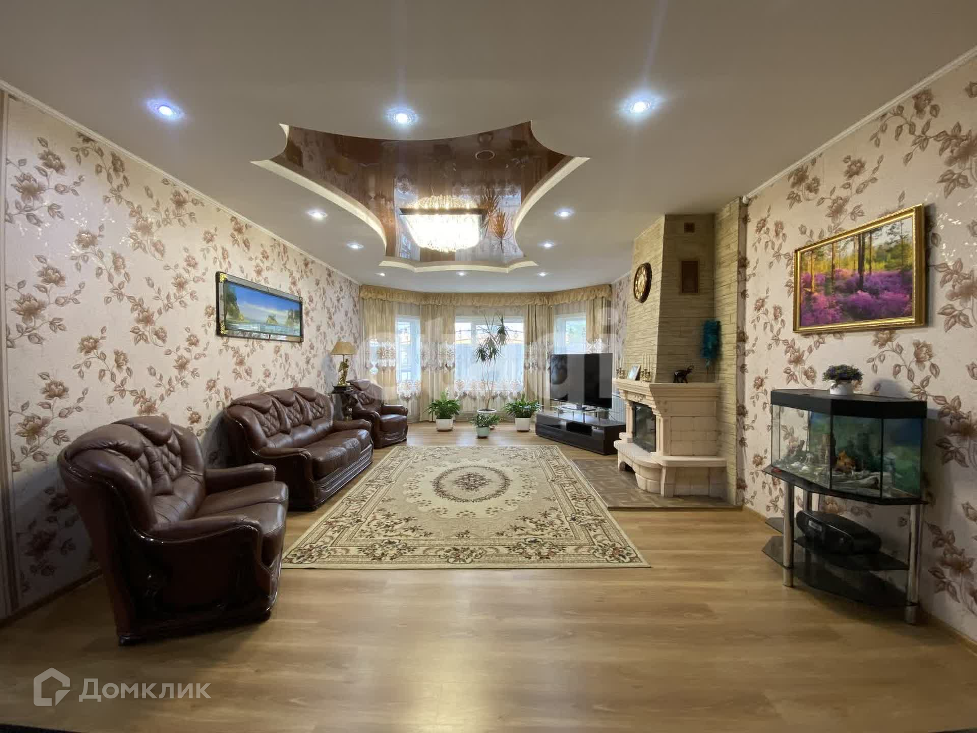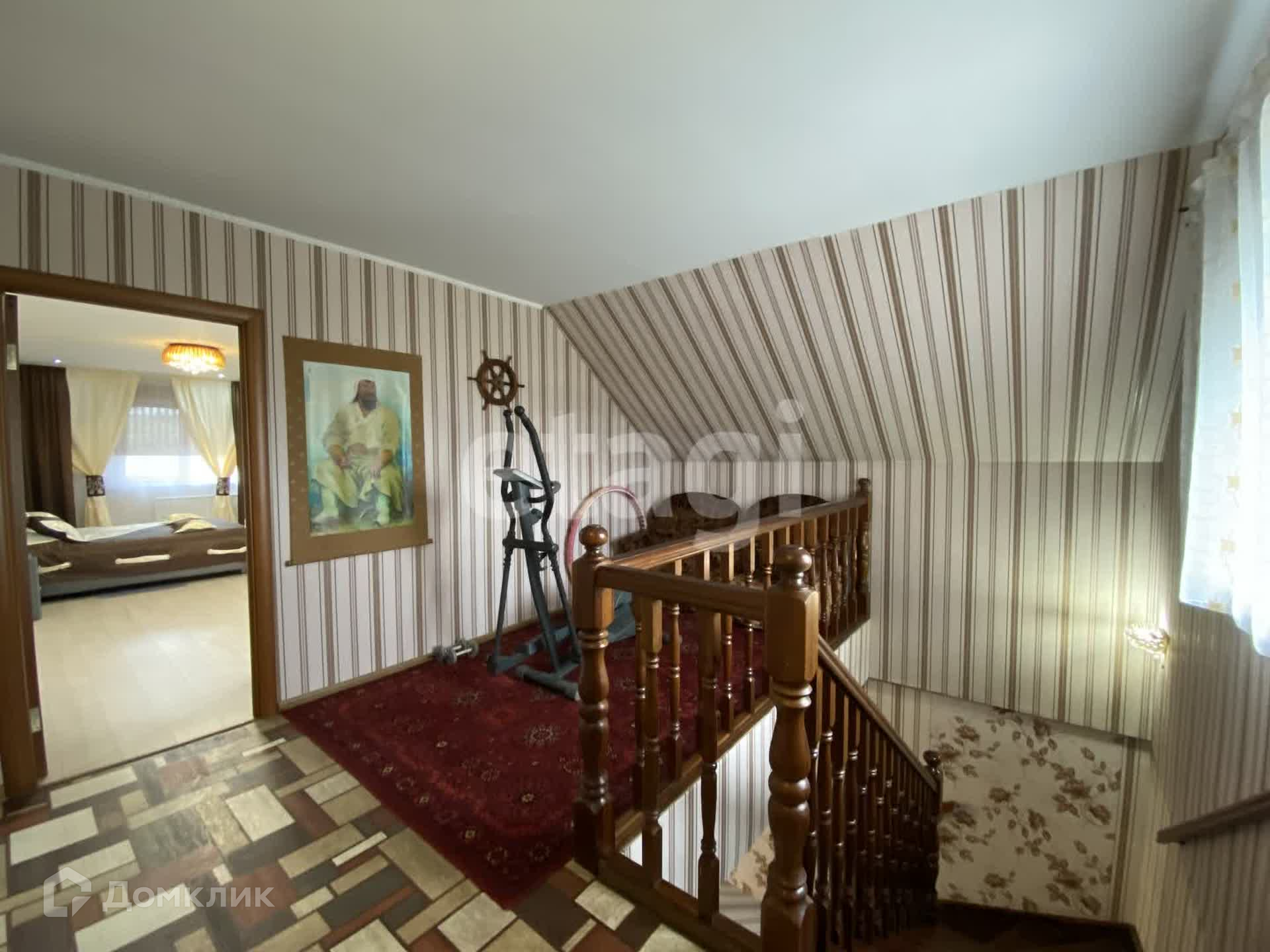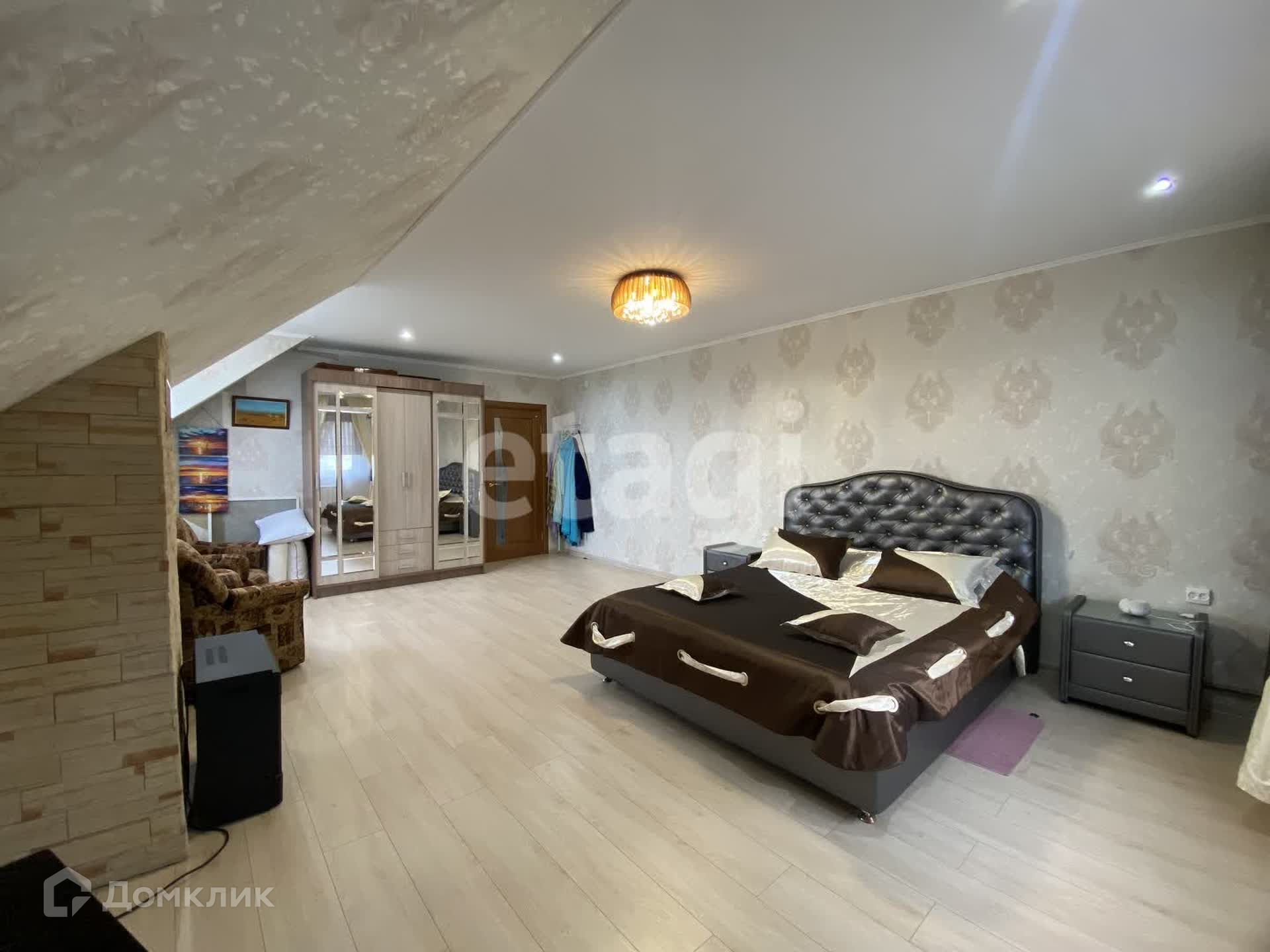 Дом двухэтажный брусовой утепленный, площадью 261,3 м2. На первом этаже: просторная гостиная, кухня, санузел. На втором этаже три спальни и совмещенный санузел. В каждой комнате установлены радиаторы, стеклопакеты, напольное покрытие — ламинат, натяжные потолки. К дому пристроен гараж на два авто (смотровая яма с переходом в погреб), котельная (котел Strapuva-40) и электрокотлом (9 Квт). Разводка отопления на 2 контура, на первый и второй этаж отдельно. Также есть действующий камин. Канализация -септик 8 м3. Скважина 25 метров.