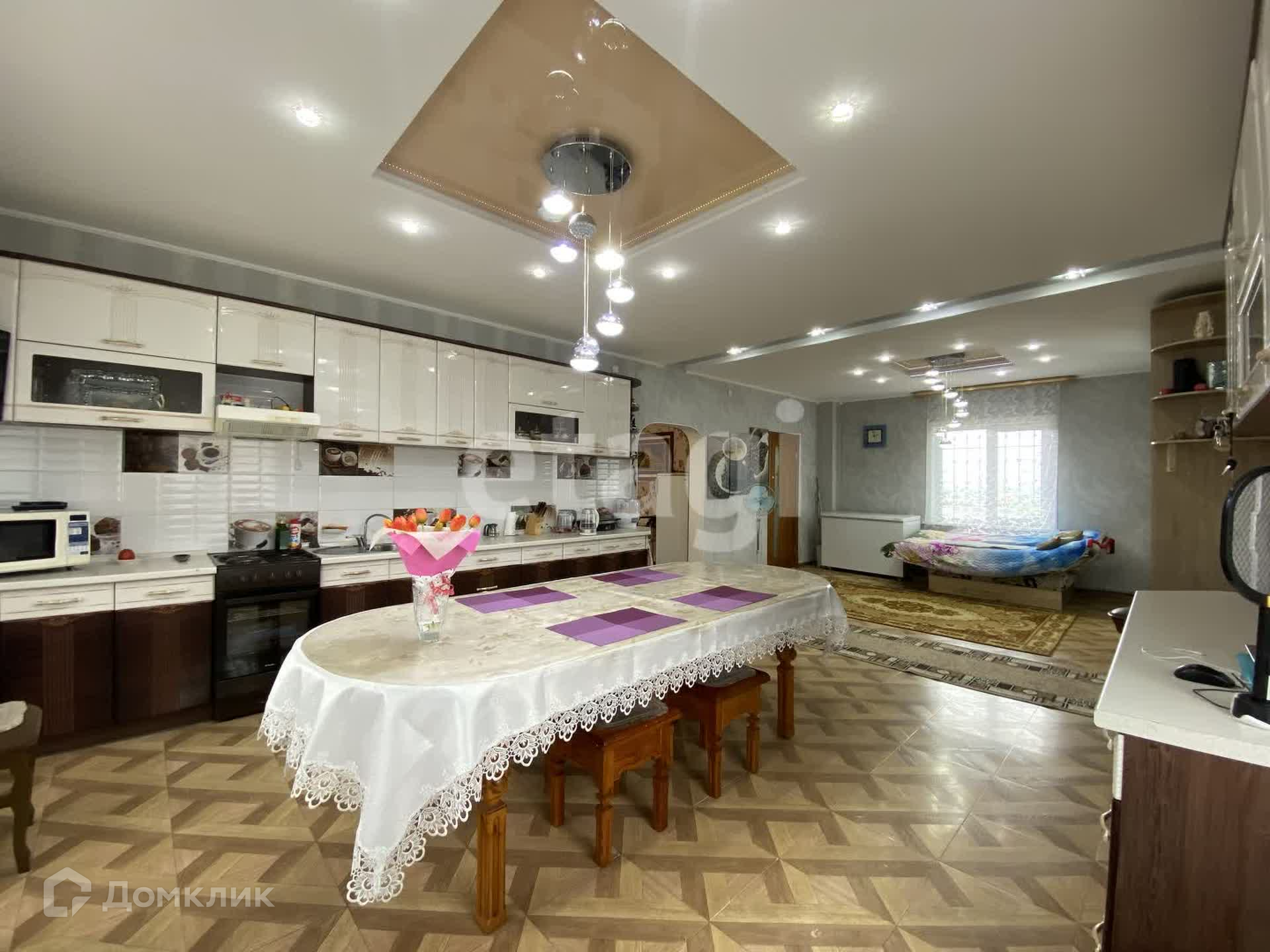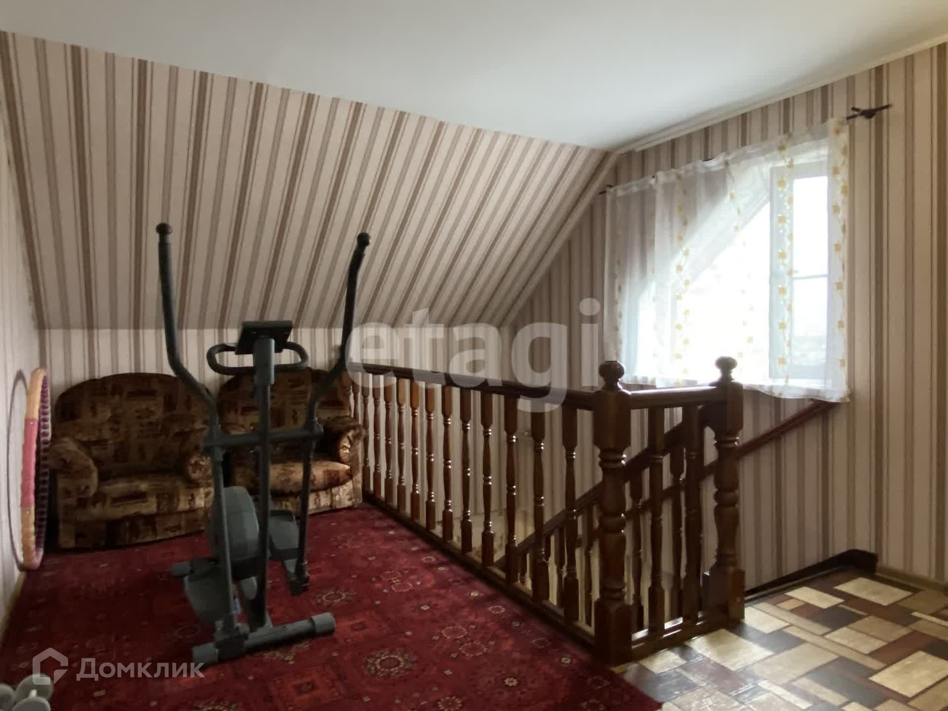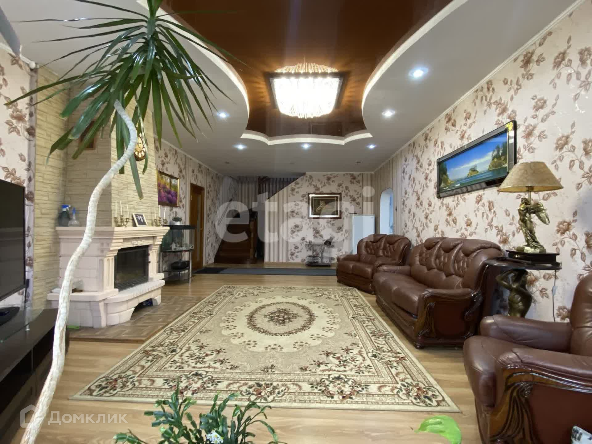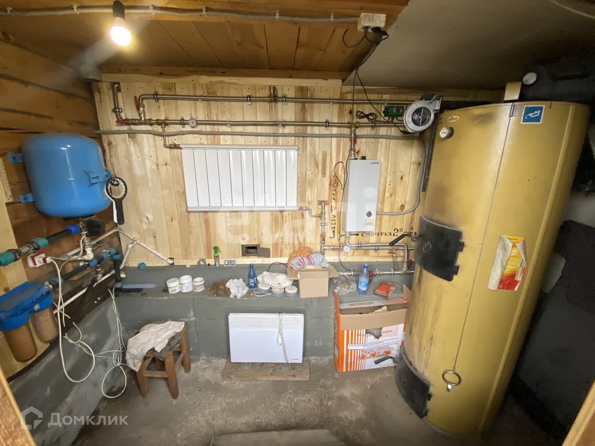 Дом двухэтажный брусовой утепленный, площадью 261,3 м2. На первом этаже: просторная гостиная, кухня, санузел. На втором этаже три спальни и совмещенный санузел. В каждой комнате установлены радиаторы, стеклопакеты, напольное покрытие — ламинат, натяжные потолки. К дому пристроен гараж на два авто (смотровая яма с переходом в погреб), котельная (котел Strapuva-40) и электрокотлом (9 Квт). Разводка отопления на 2 контура, на первый и второй этаж отдельно. Также есть действующий камин. Канализация -септик 8 м3. Скважина 25 метров.