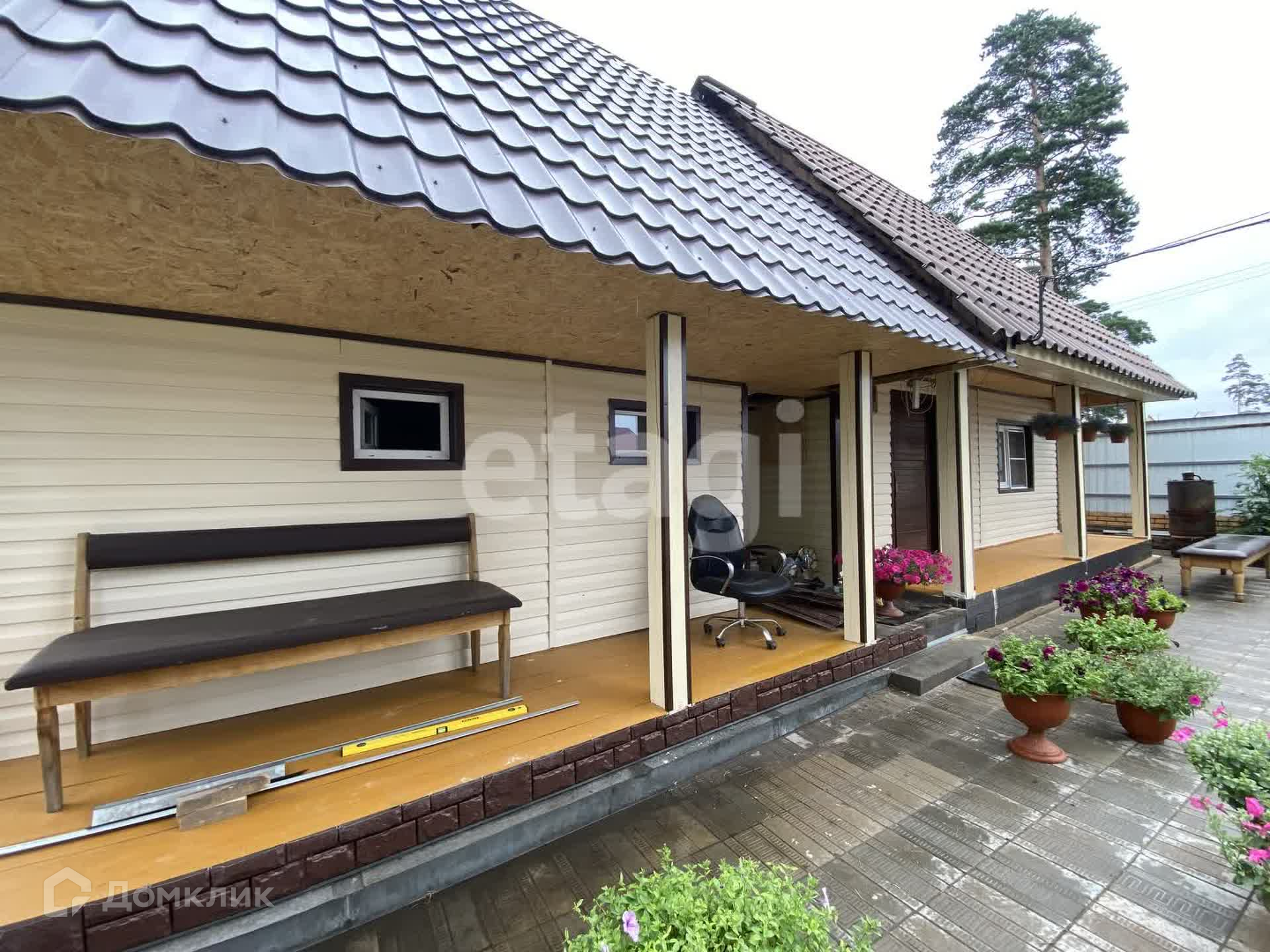 Участок ровный 8 соток. На участке: баня, летний гостевой домик, теплица, земля обработана, имеются насаждения. Придомовая территория выложена плиткой.