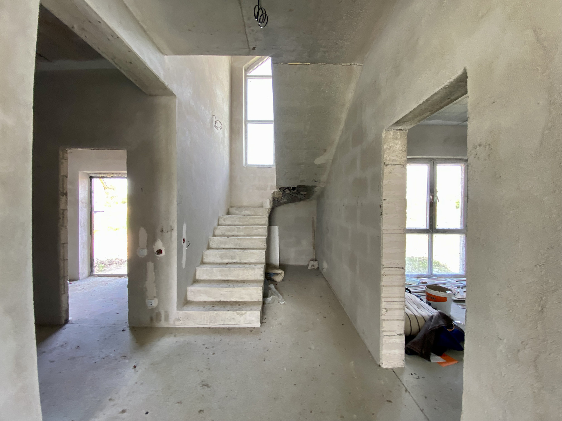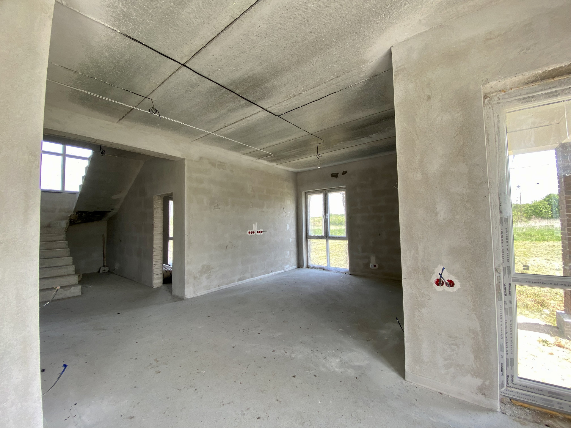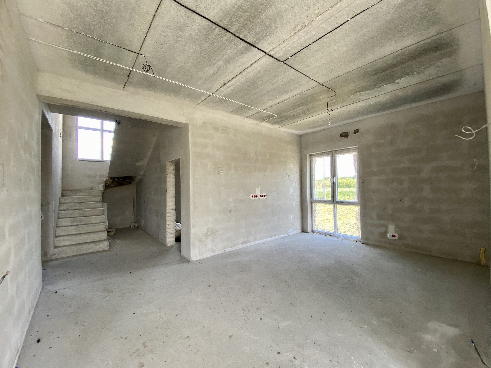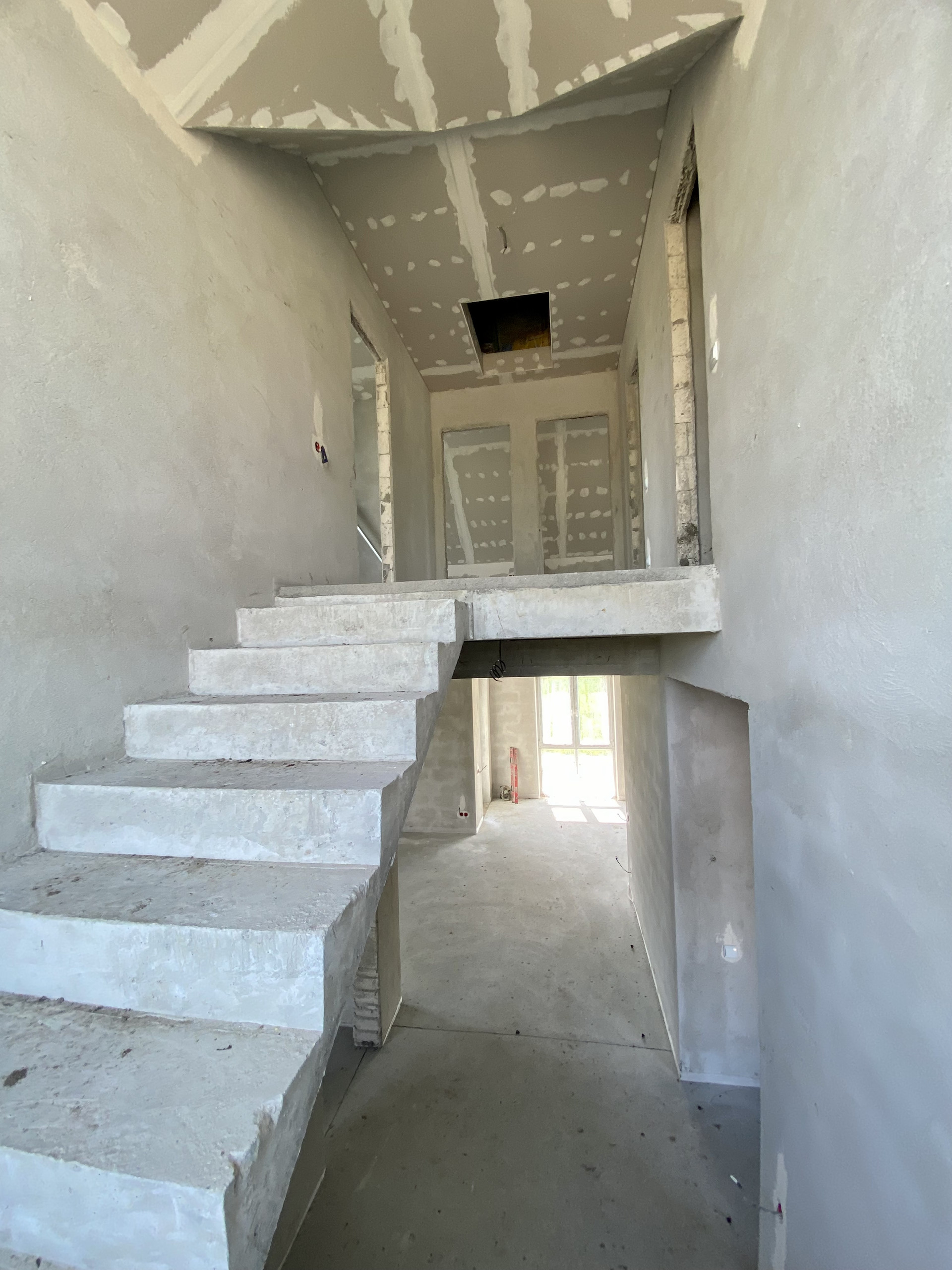 Качественный серый ключ, вся электрика разведена по дому. Лестница монолит.