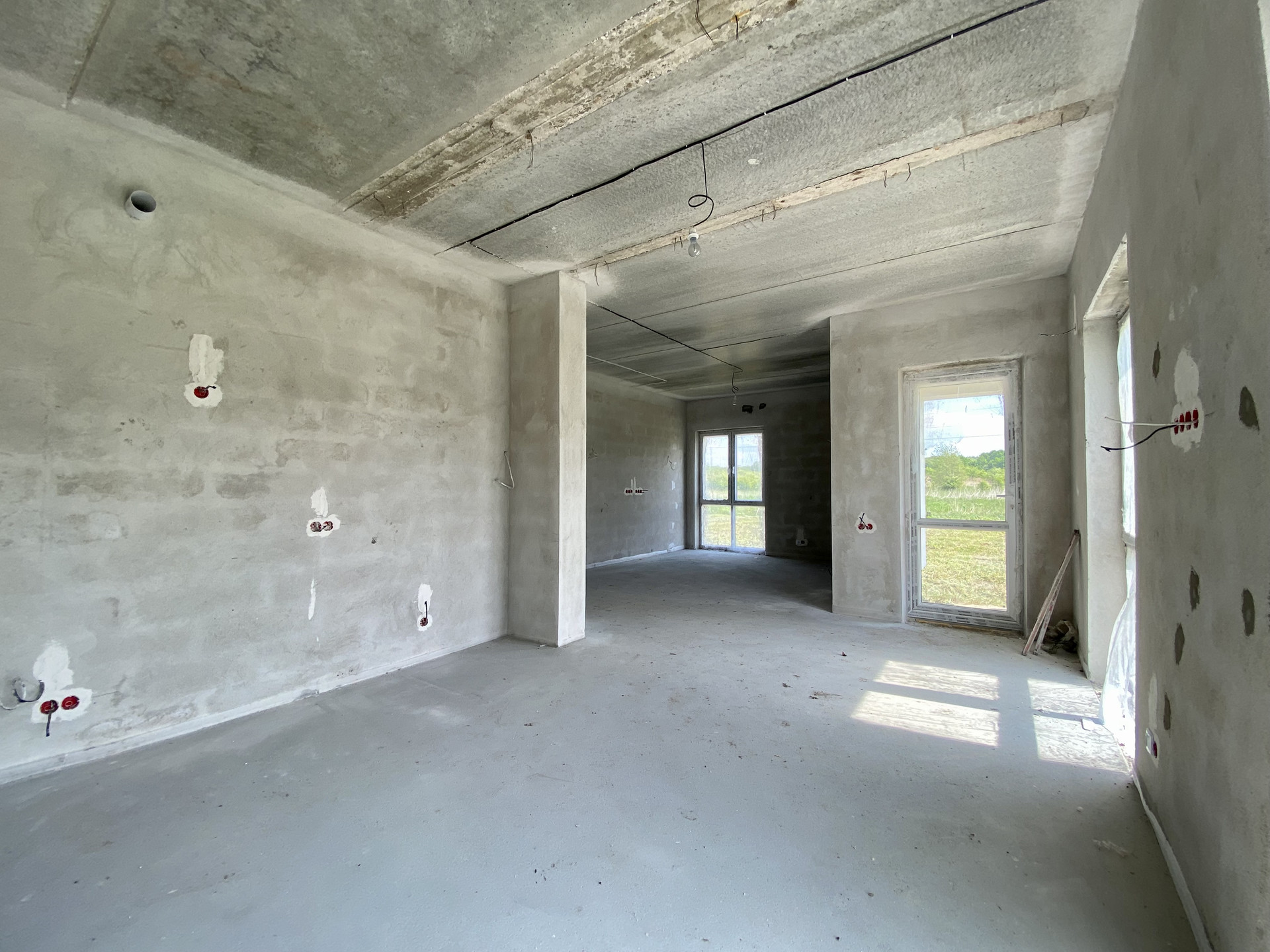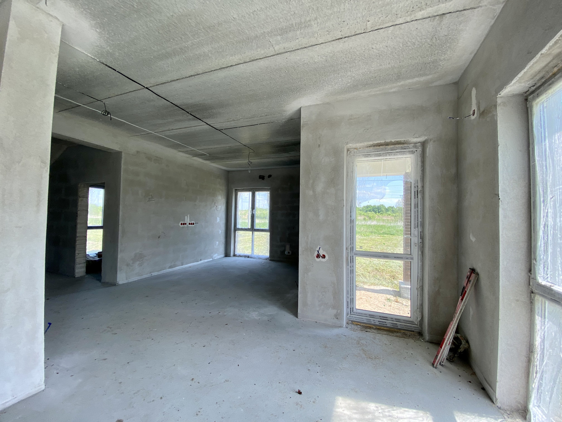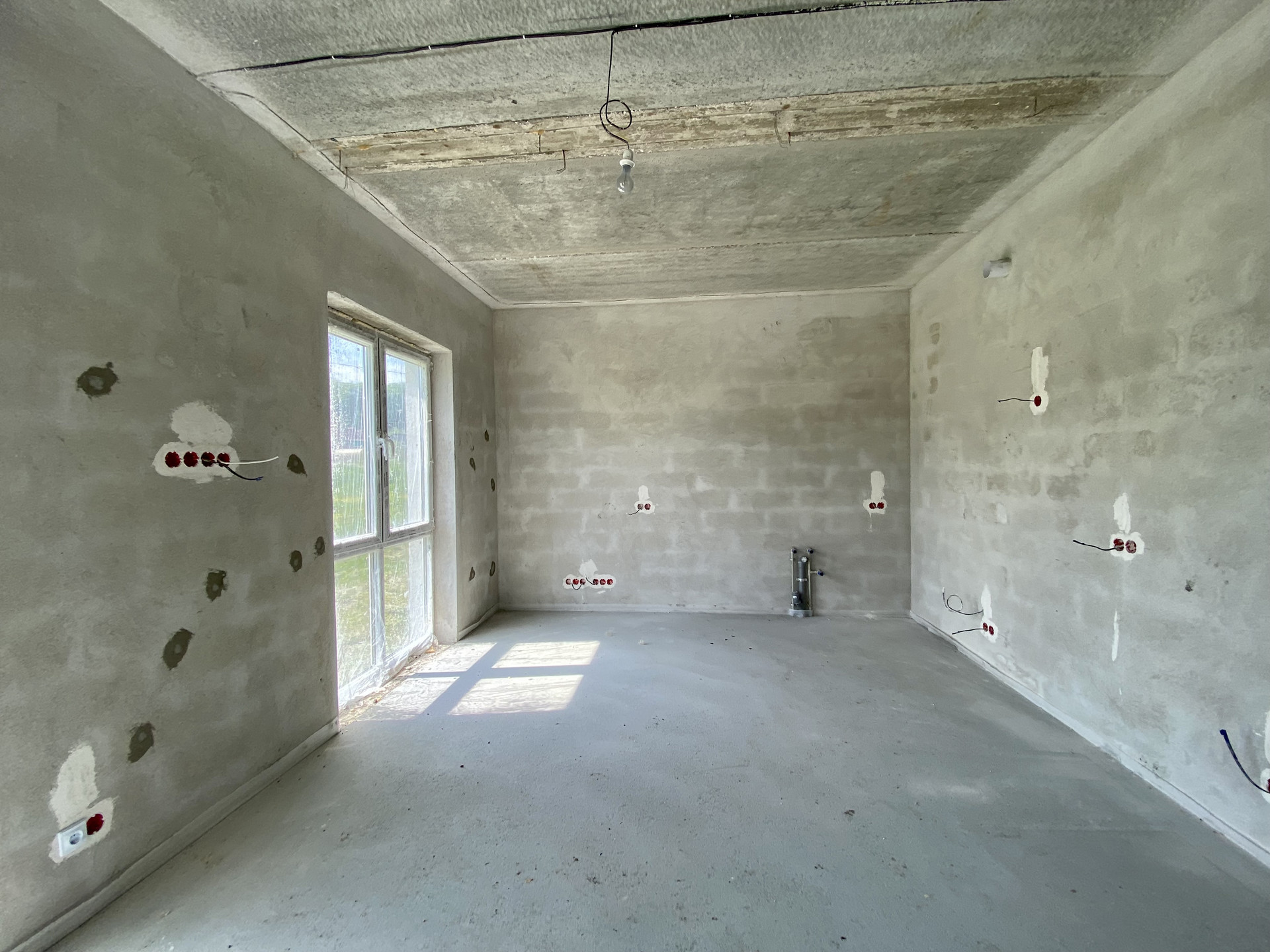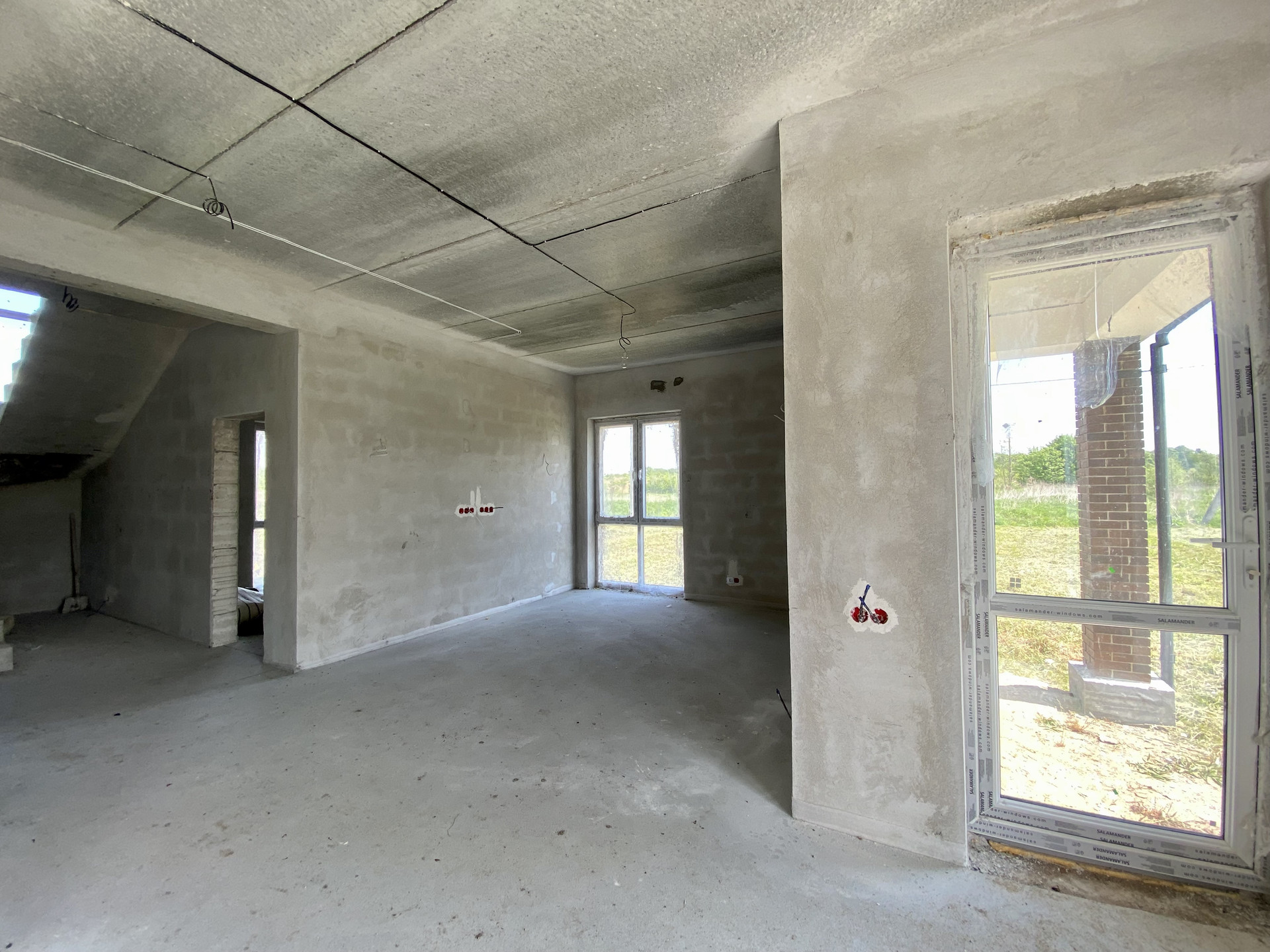 Качественный серый ключ, вся электрика разведена по дому. Лестница монолит.