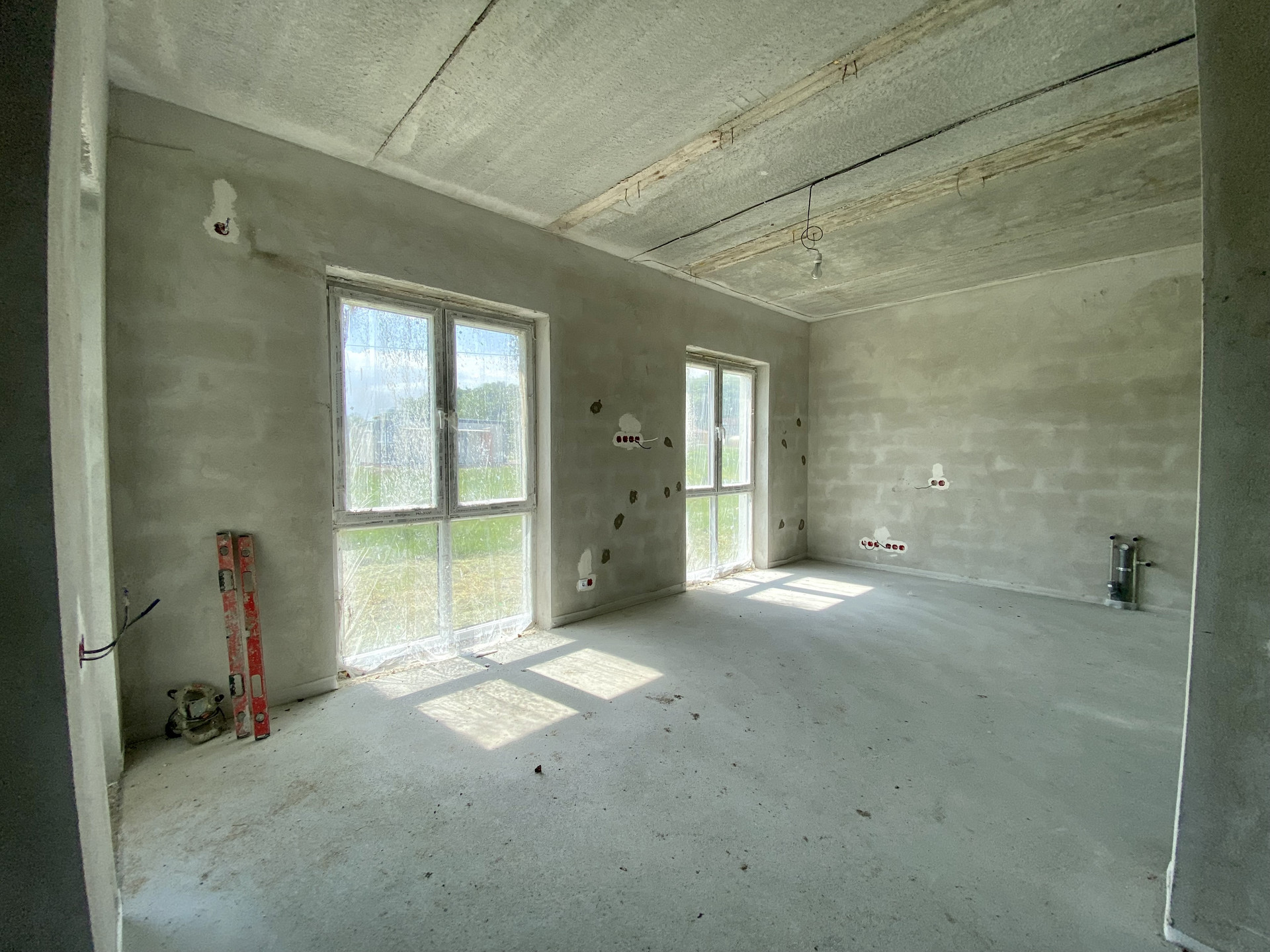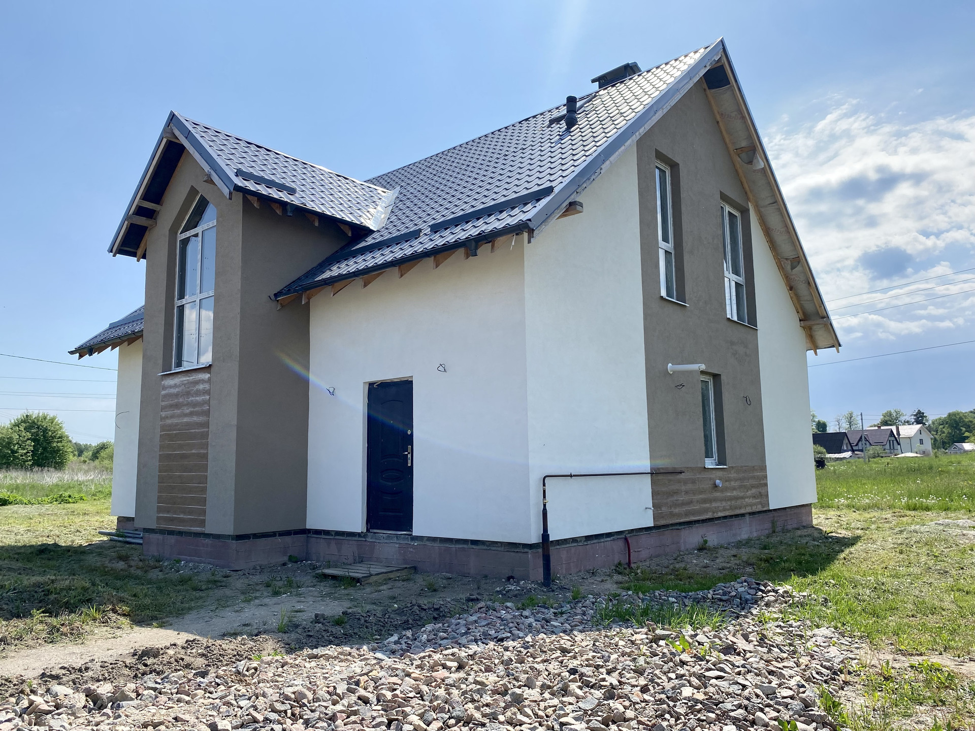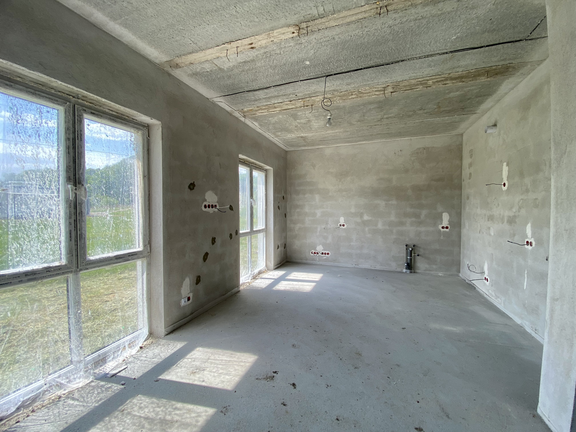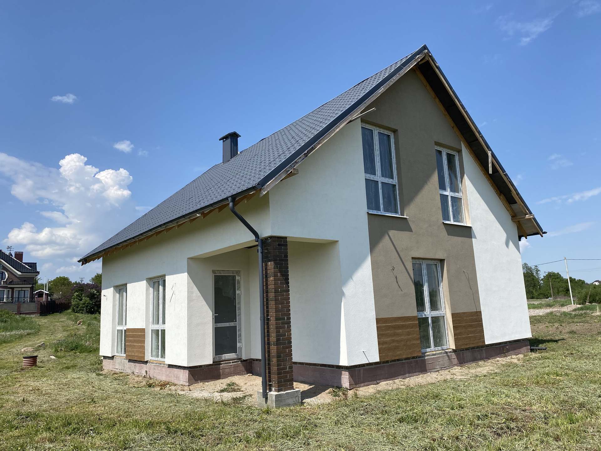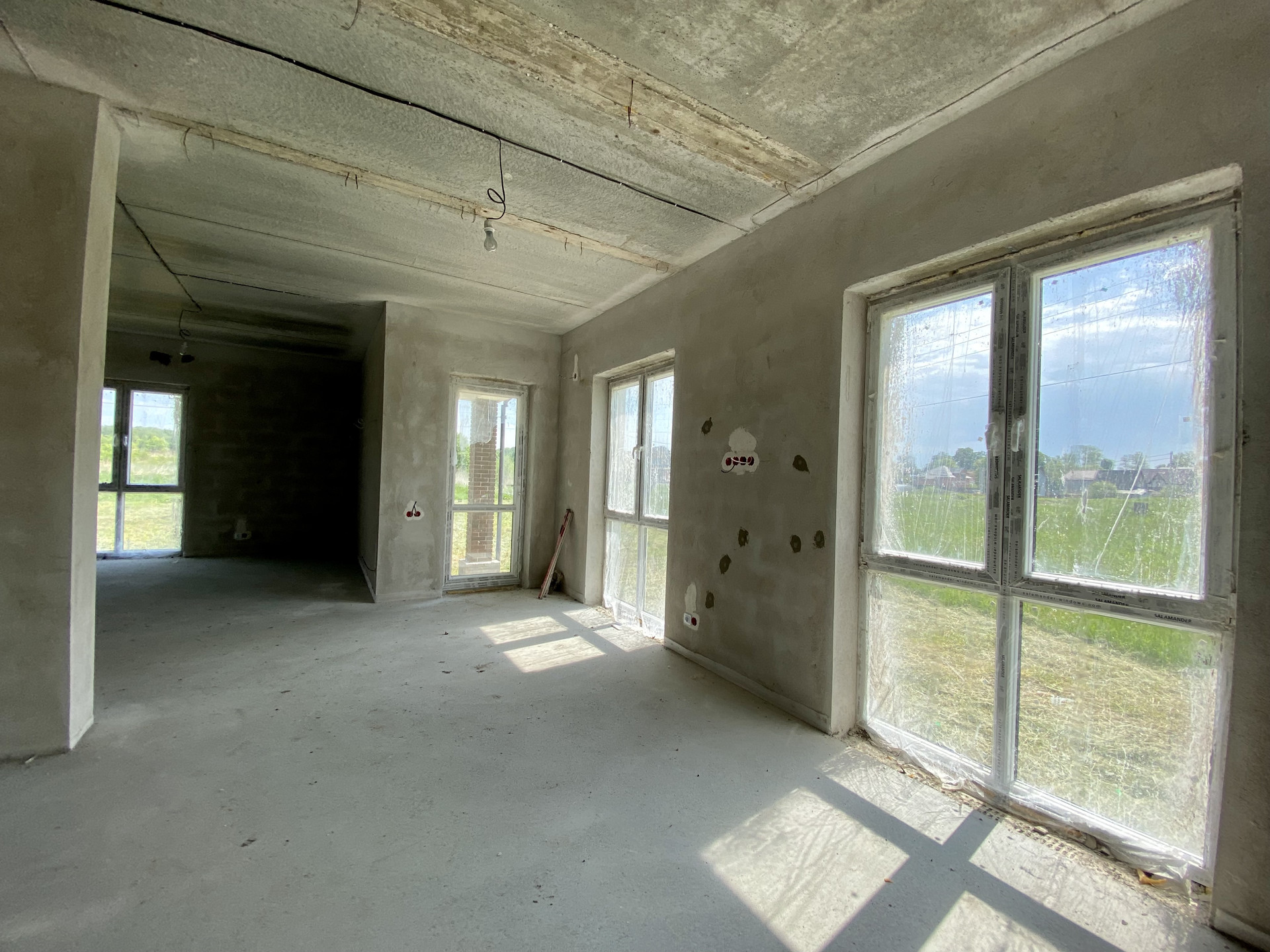 Качественный серый ключ, вся электрика разведена по дому. Лестница монолит.