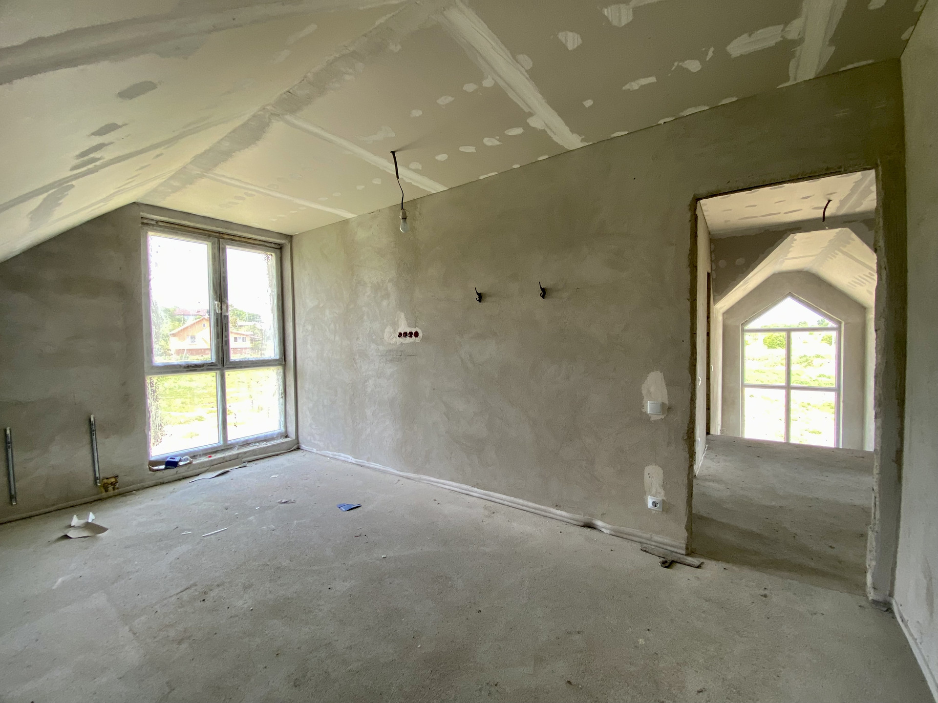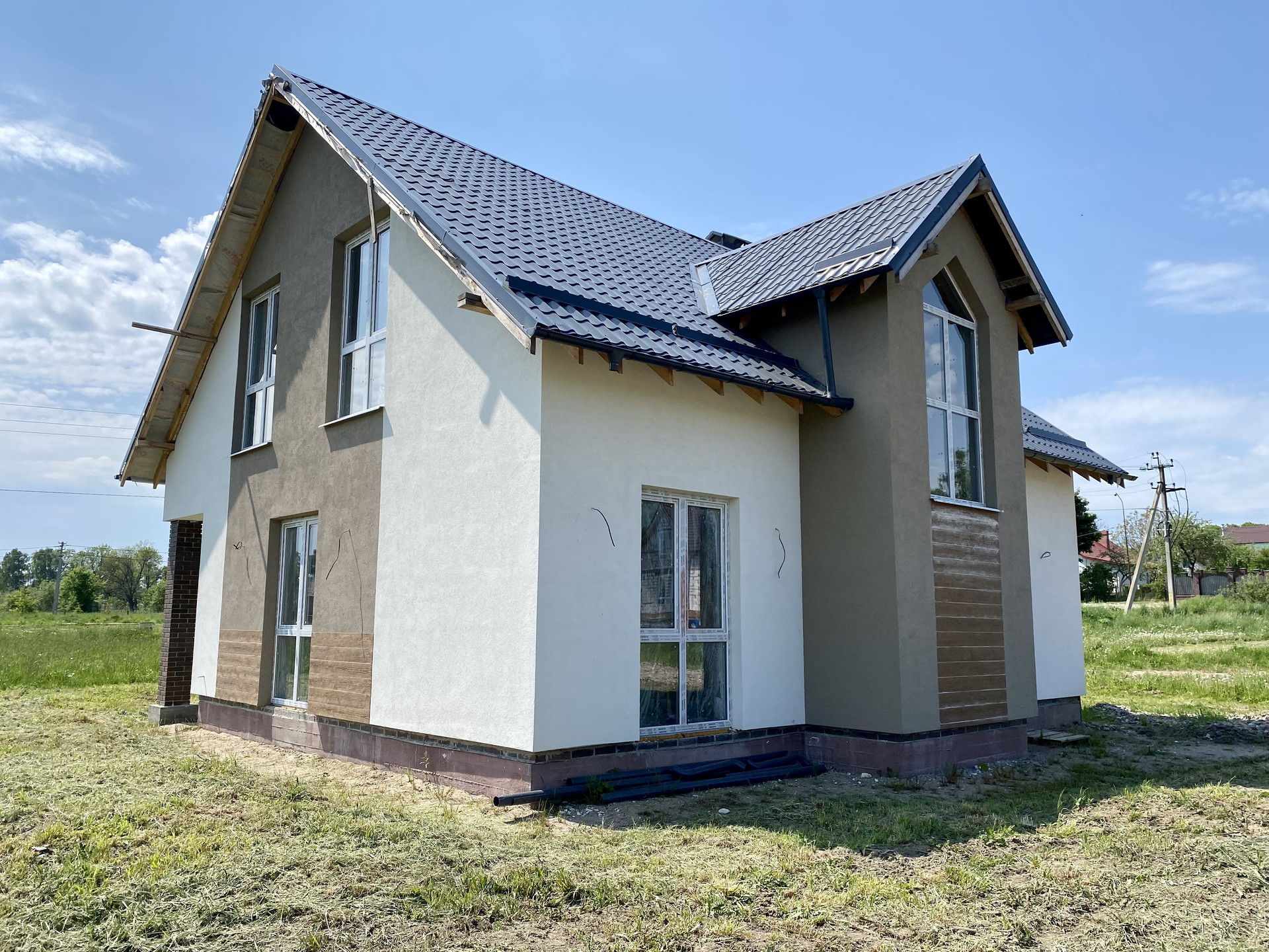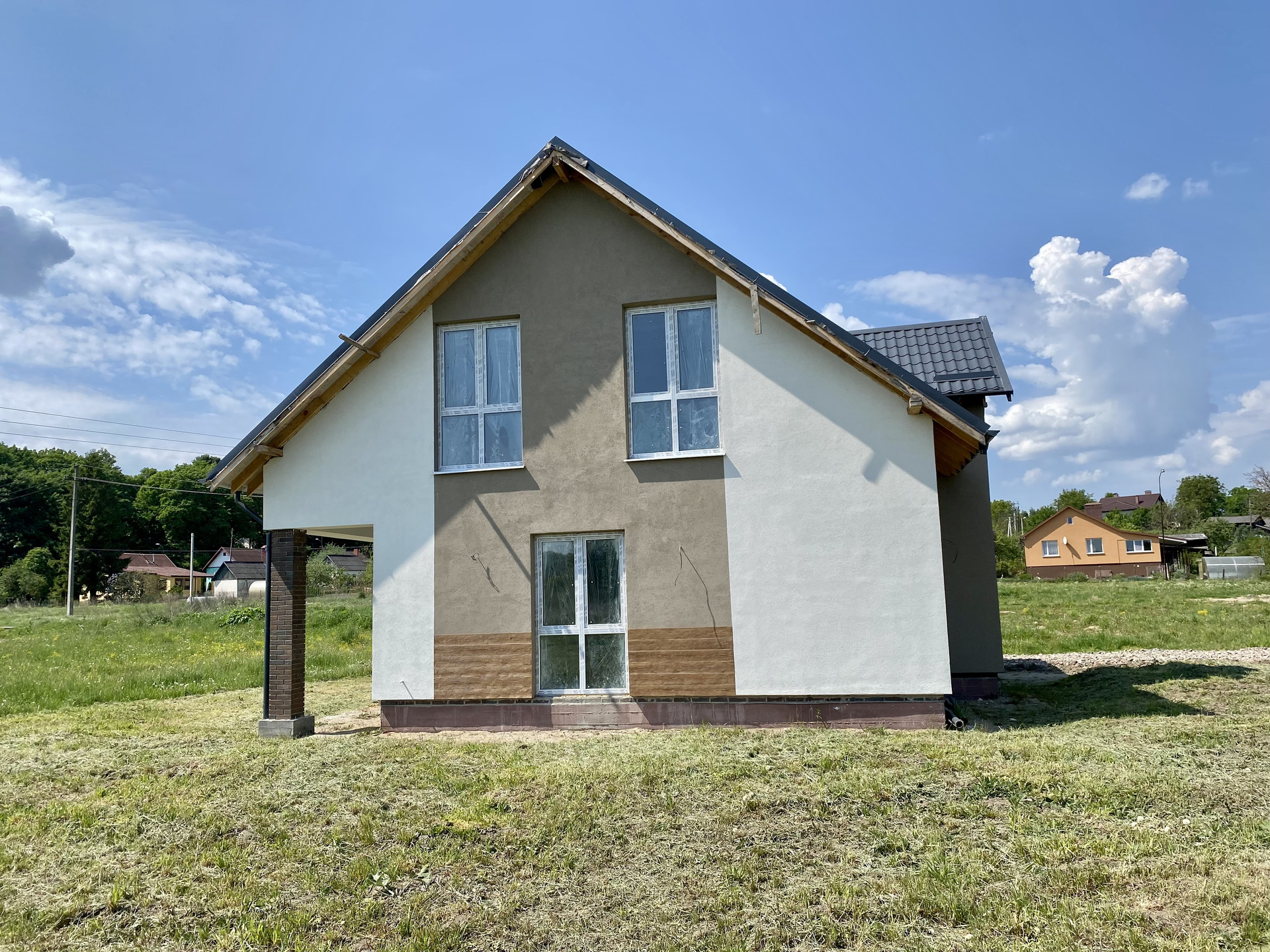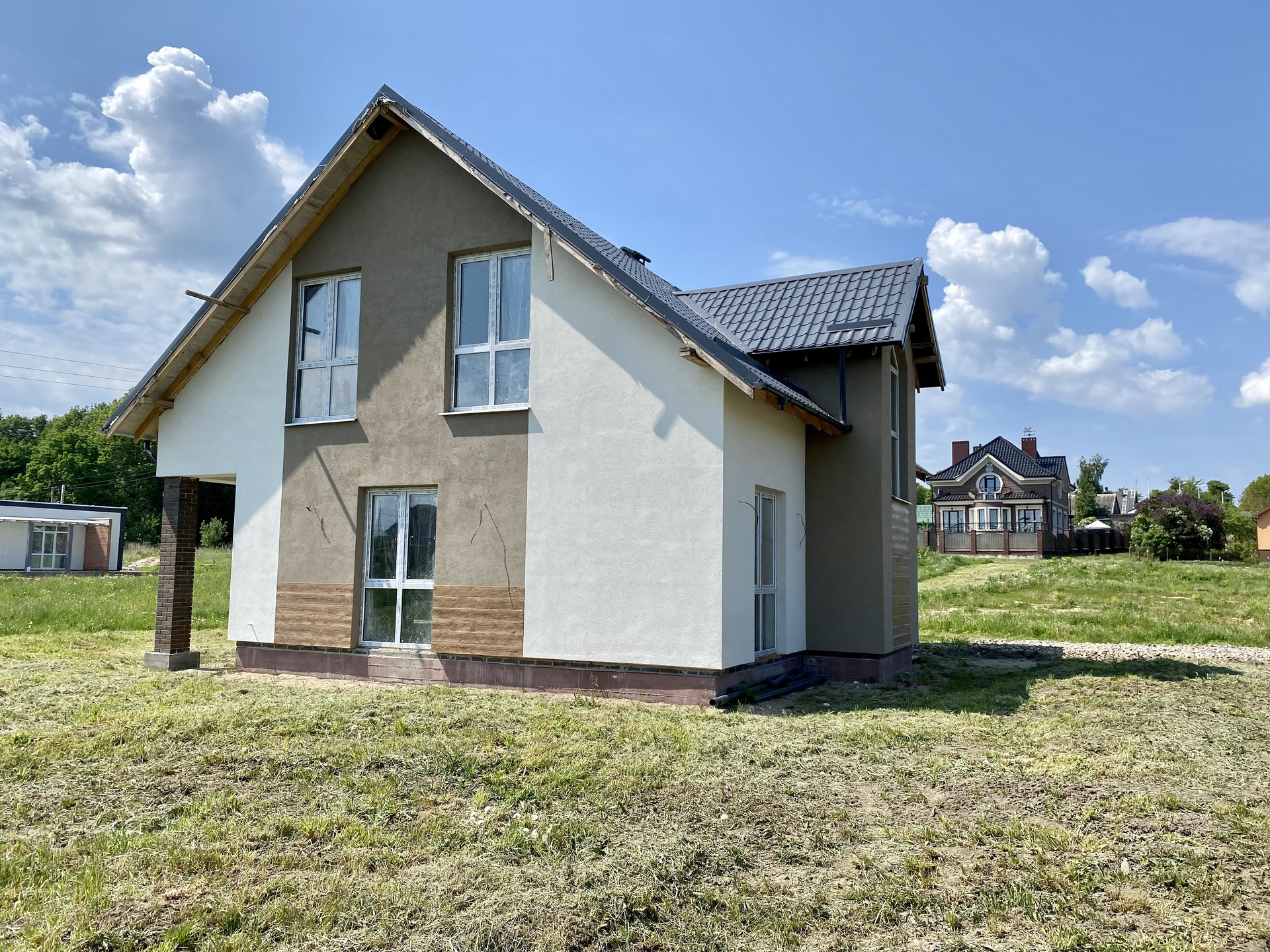 Качественный серый ключ, вся электрика разведена по дому. Лестница монолит.
