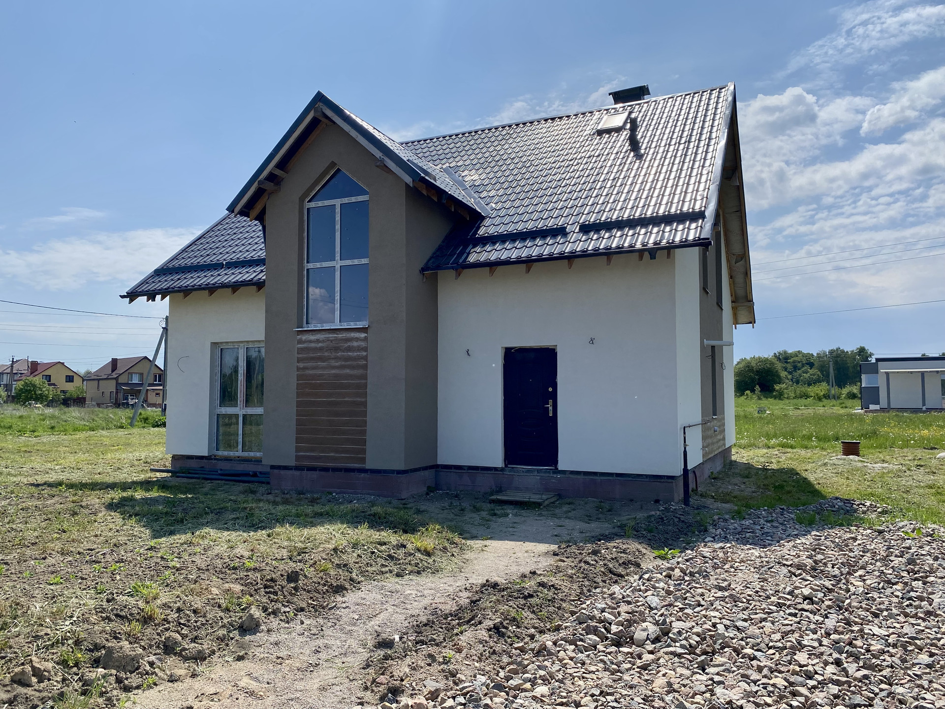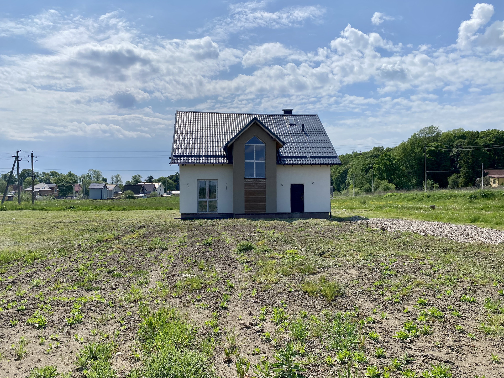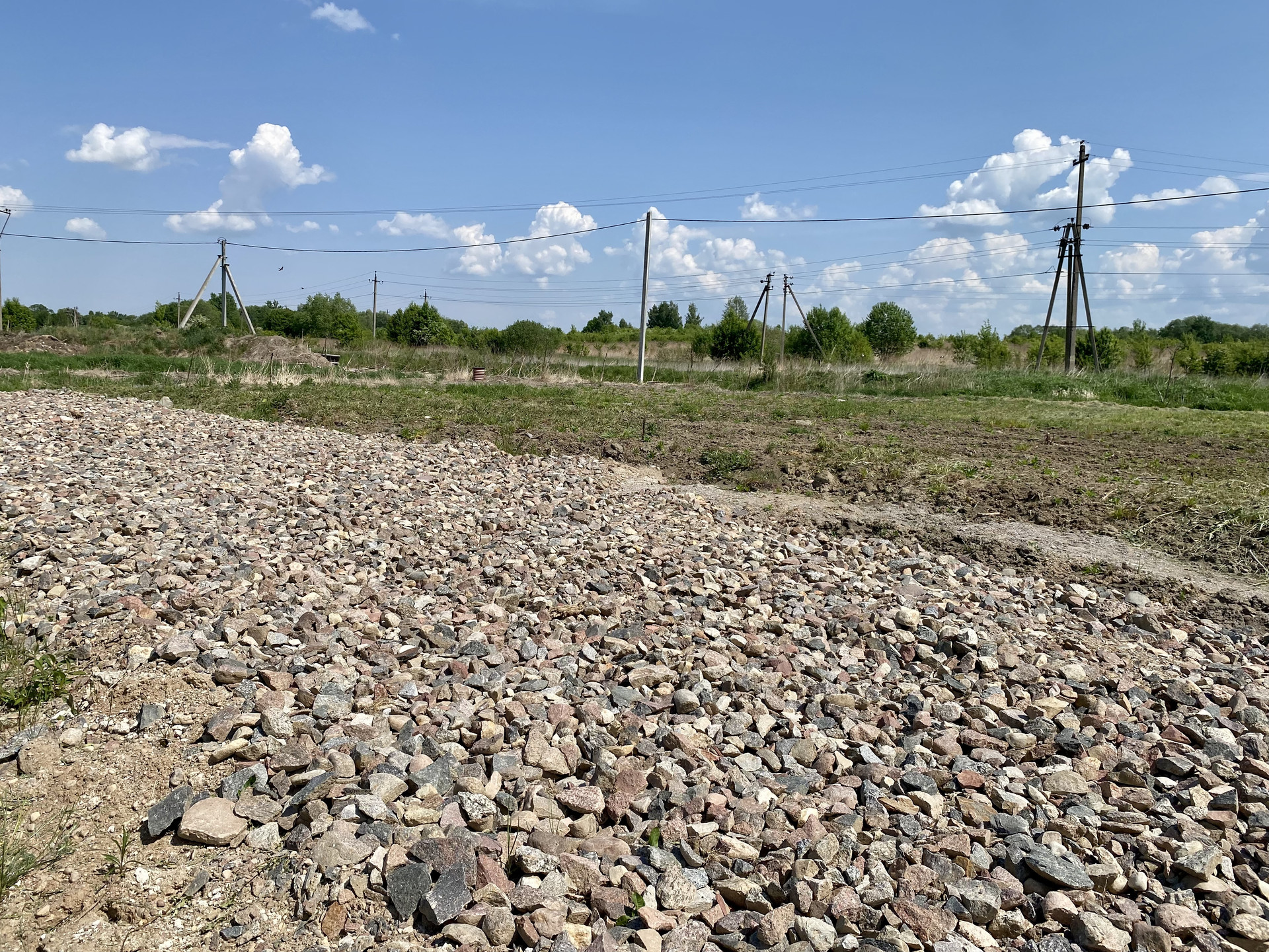 Отсыпана дорога до дома (песчаная подушка, гидроизоляция, щебень)