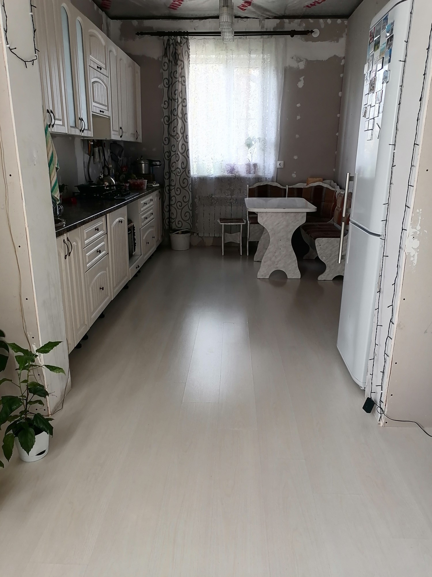 Дом построен 2020 году.Своё газовое отопление,скважина в доме 32 метра вода чистая. В доме три комнаты, четвёртая зал совмещена с кухней, санузел совмещённый с ванной ( душевая кабина на двоих)теплый пол, просторный коридор, с теплым полом в прихожей. Также на участке баня, сарай,беседка,теплица,грядки, насаждения.