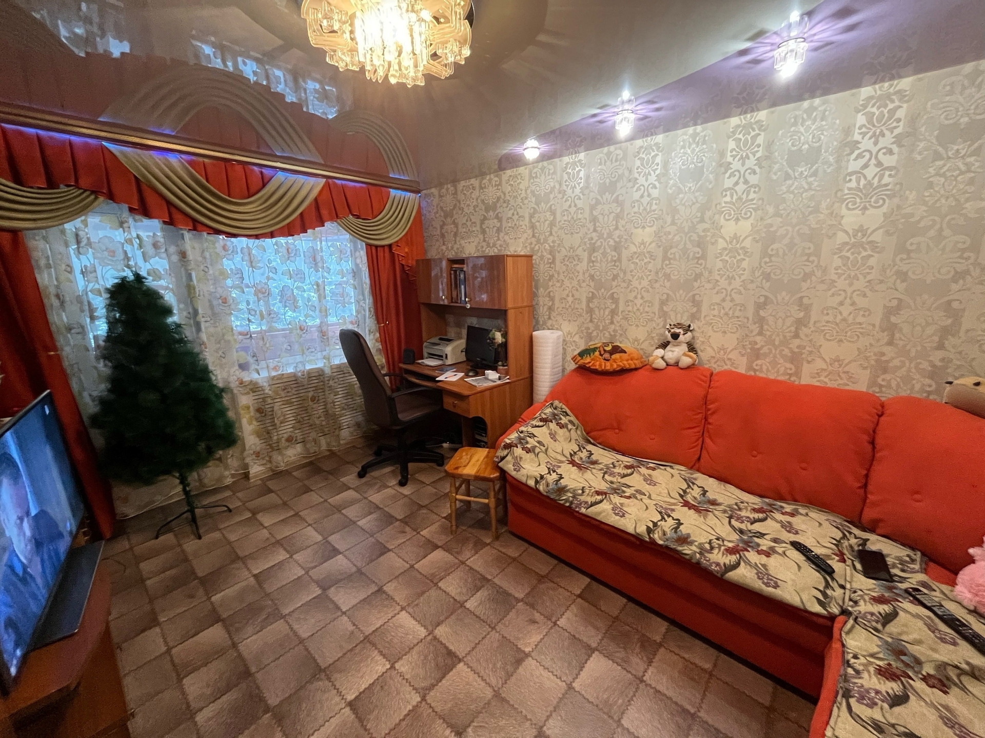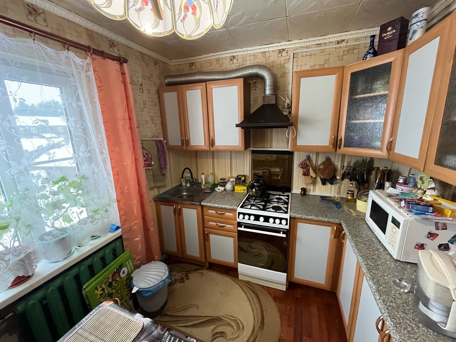 Частично остается мебель(На кухне все кроме холодильника, в прихожей шкаф, в большой комнате диван и компьютерный стол, в ванной стиральную машину)