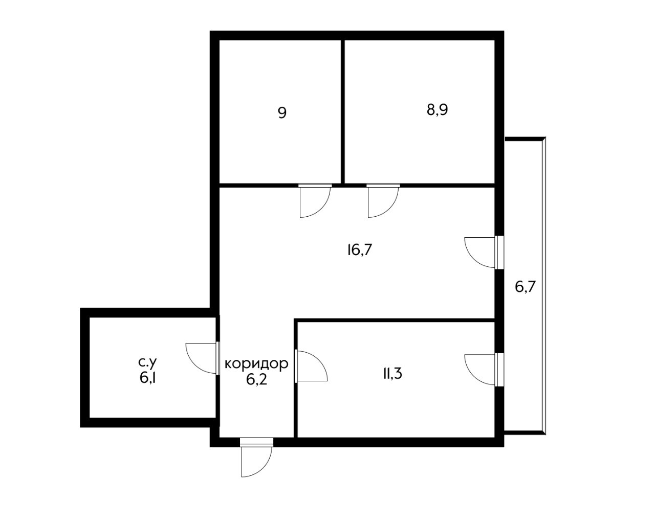Общая площадь 58.2 м2