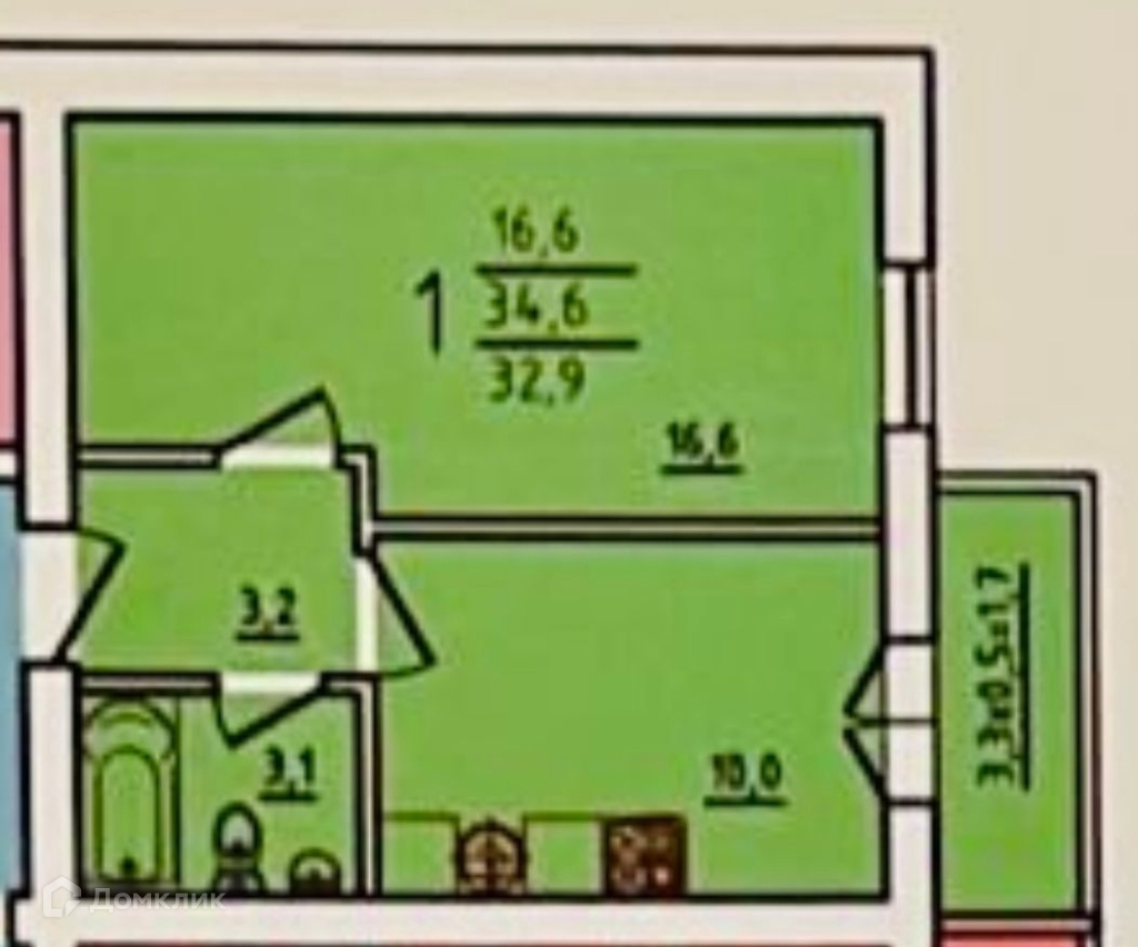 Общая площадь 34 м2