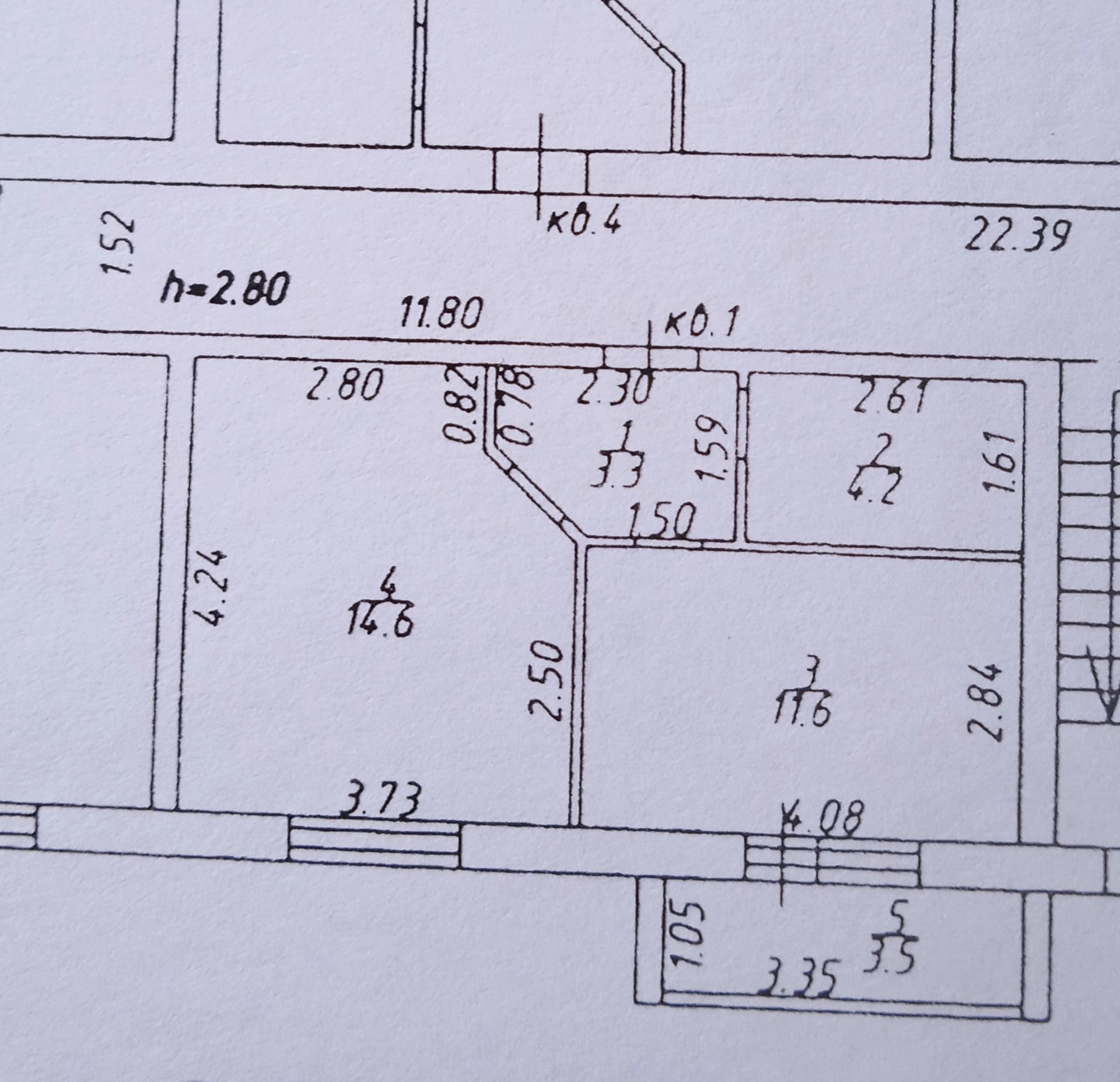 Высота потолков 2.8 м