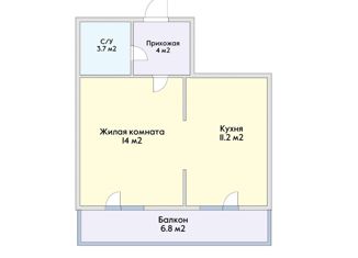 Общая площадь: 34 м2