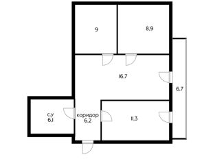 Общая площадь: 61.9 м2