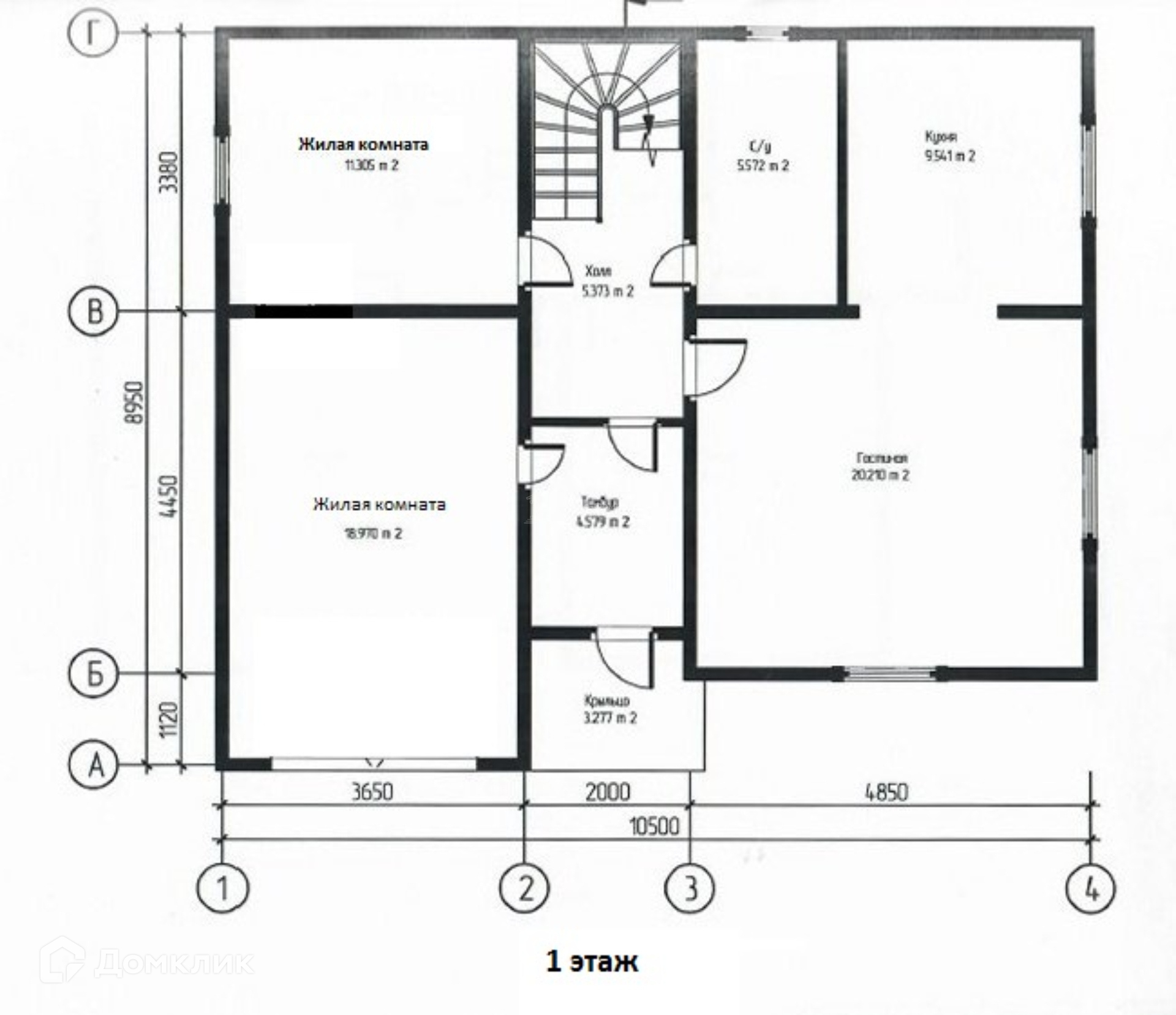 1 этаж: просторная кухня-гостиная, 2 изолированные спальни, санузел