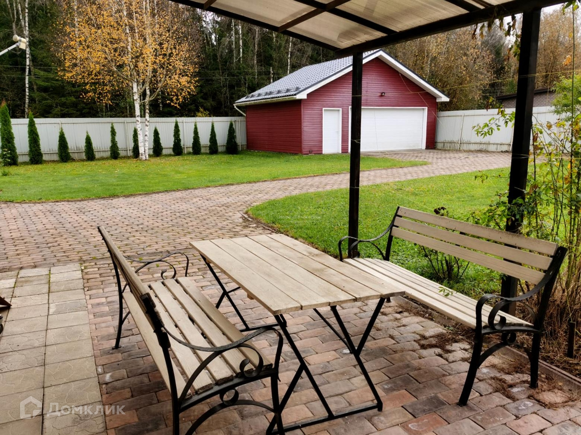 Участок ИЖС 11 соток (подьездная дорога с 2-х сторон) ровный, просторный, места достаточно, чтобы разбить сад и организовать огород. Высажен низкорослый английский газон, многолетние туи красивой стеной вдоль всего забора, выложены дорожки к дому, мангальной зоне и гаражу. Удачное расположение дома на участке позволяет просматривать всю его территорию.