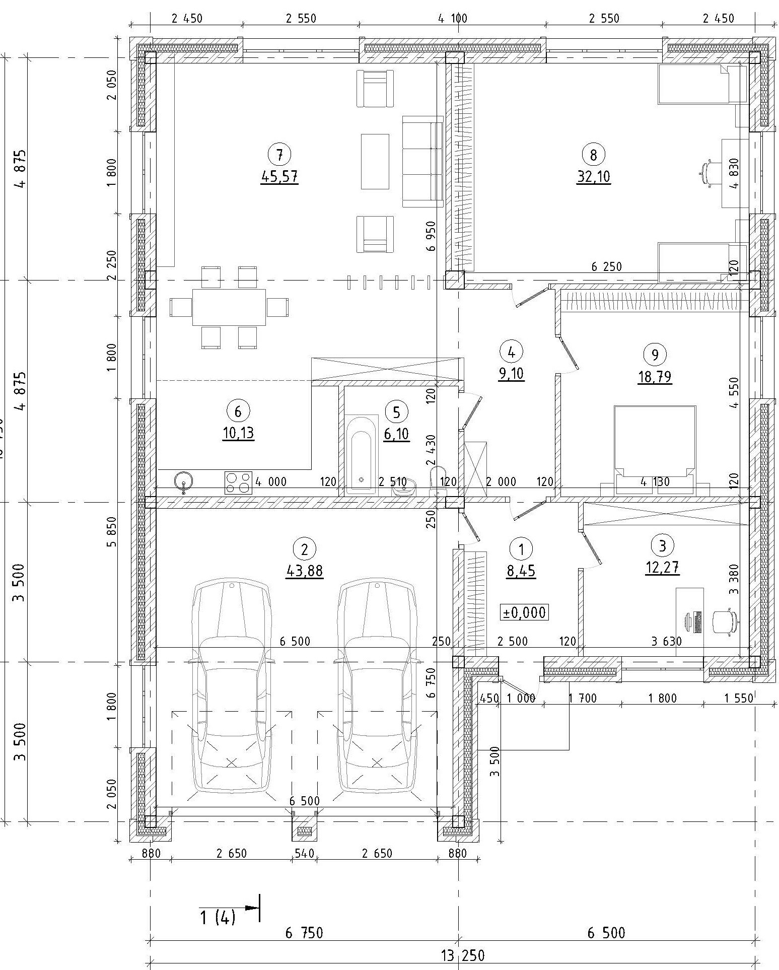 - теплый гараж на 2 машиноместа, гаражные секционные ворота DoorHan с торсионным механизмом.
