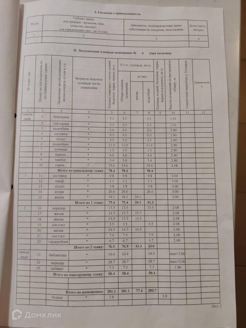 1.Общая площадь дома 281,1м2, в том числе гараж на 2 а/м, площадью 33,6м2