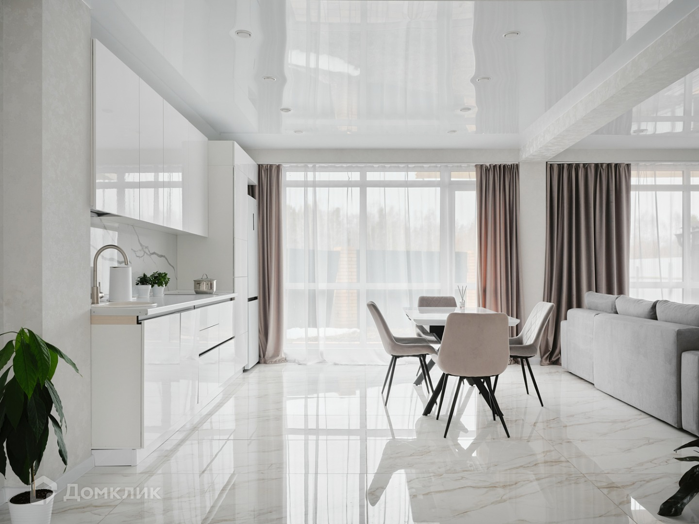Первый этаж  кухня-гостиная с выходом на участок, с качественным ,красивым ремонтом  и всей мебелью .сан.узел .