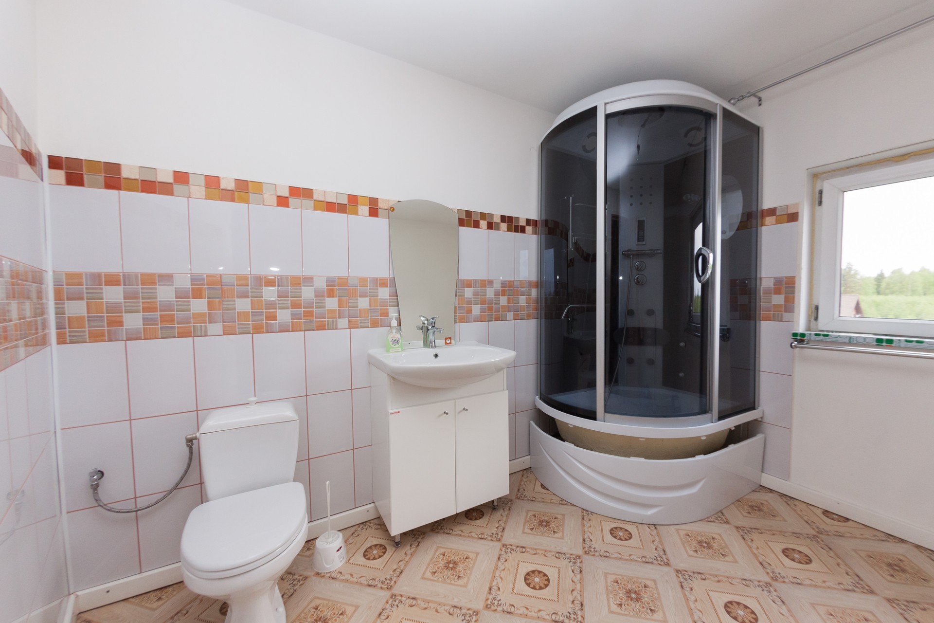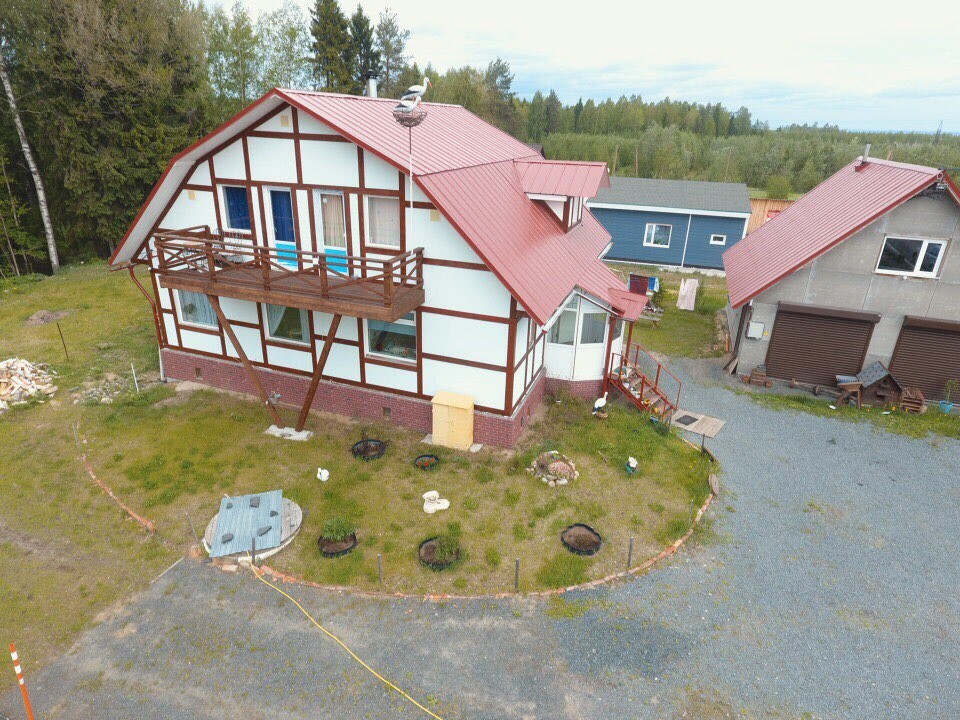 2 этаж: две спальни, санузел, балкон. Дом полностью оборудован для постоянного проживания, имеется скважина, септик, система очистки воды, печное отопление, теплый водяной пол. По всему дому проведена система кондиционирования. Установлен бойлер на 150 литров воды.