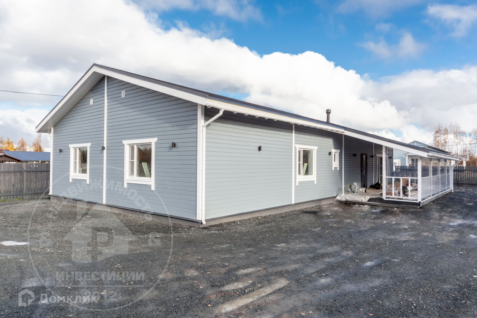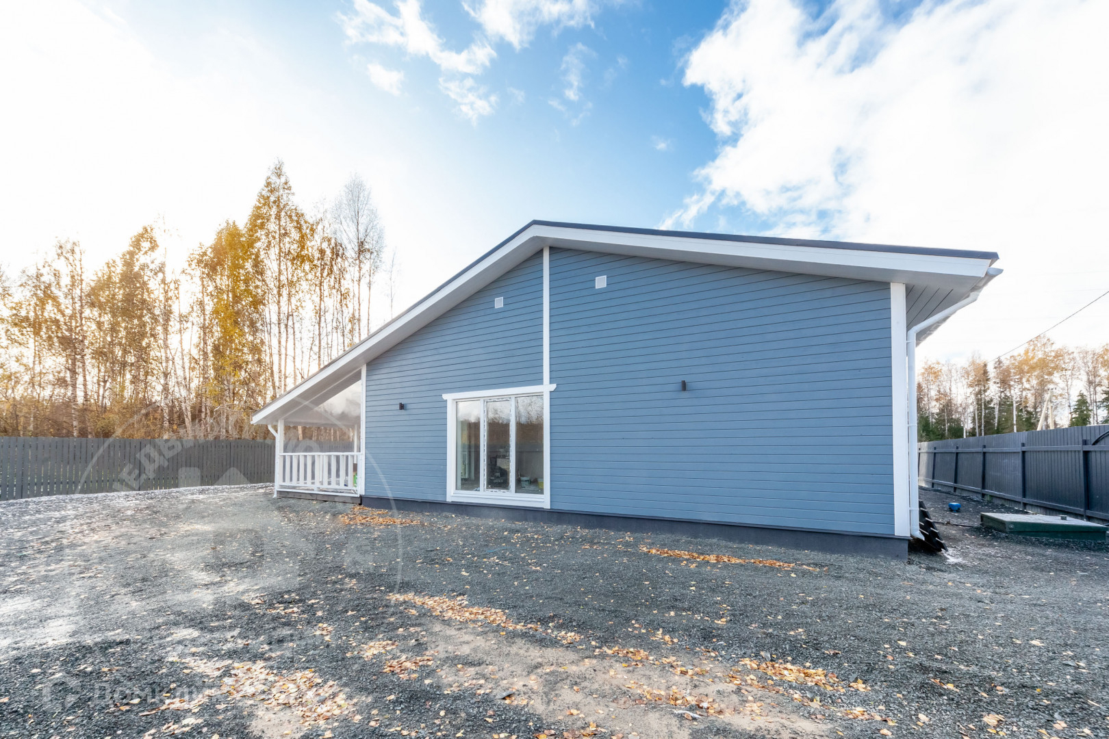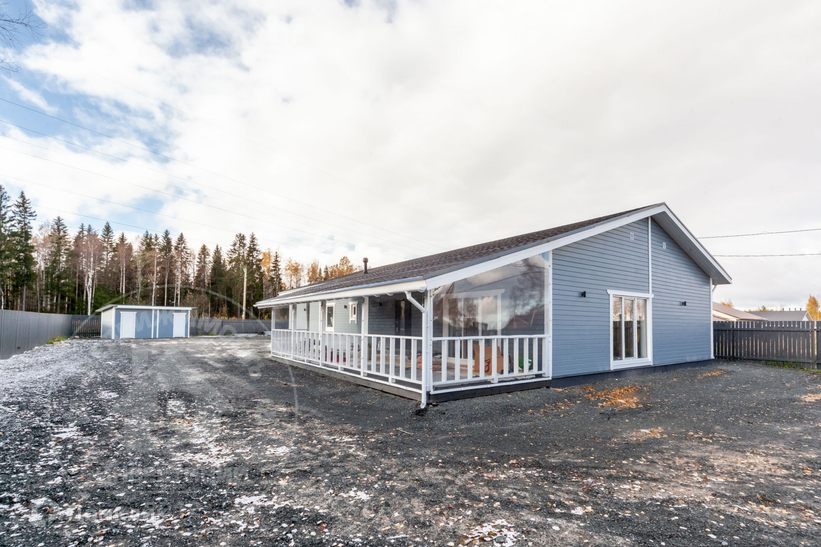 Одноэтажный дом 2023 года постройки, выполнен по технологии каркасного строительства, наиболее подходящий с учетом климата и ландшафта участка.