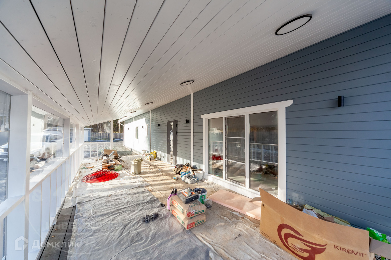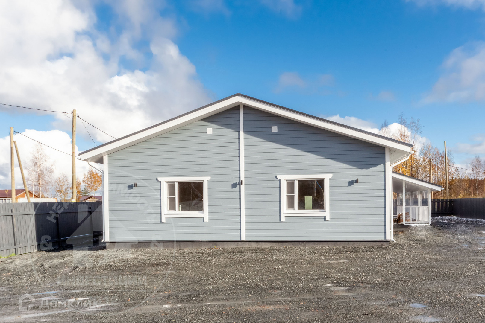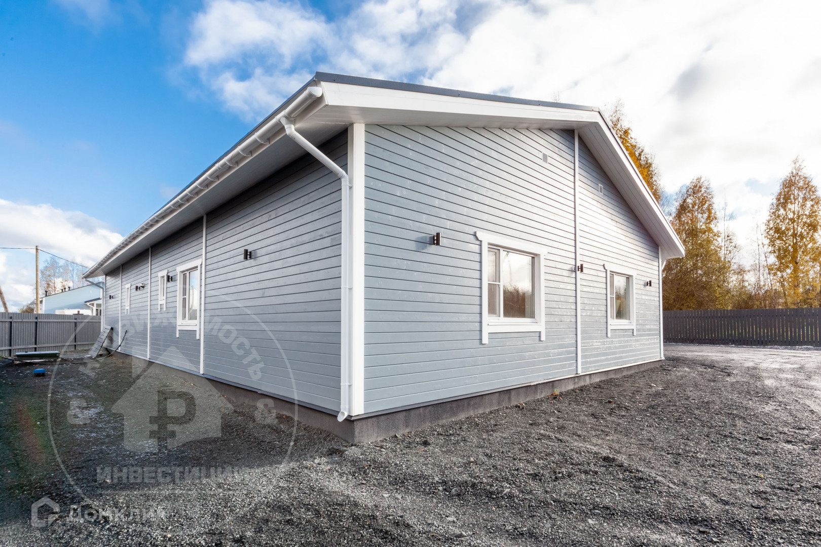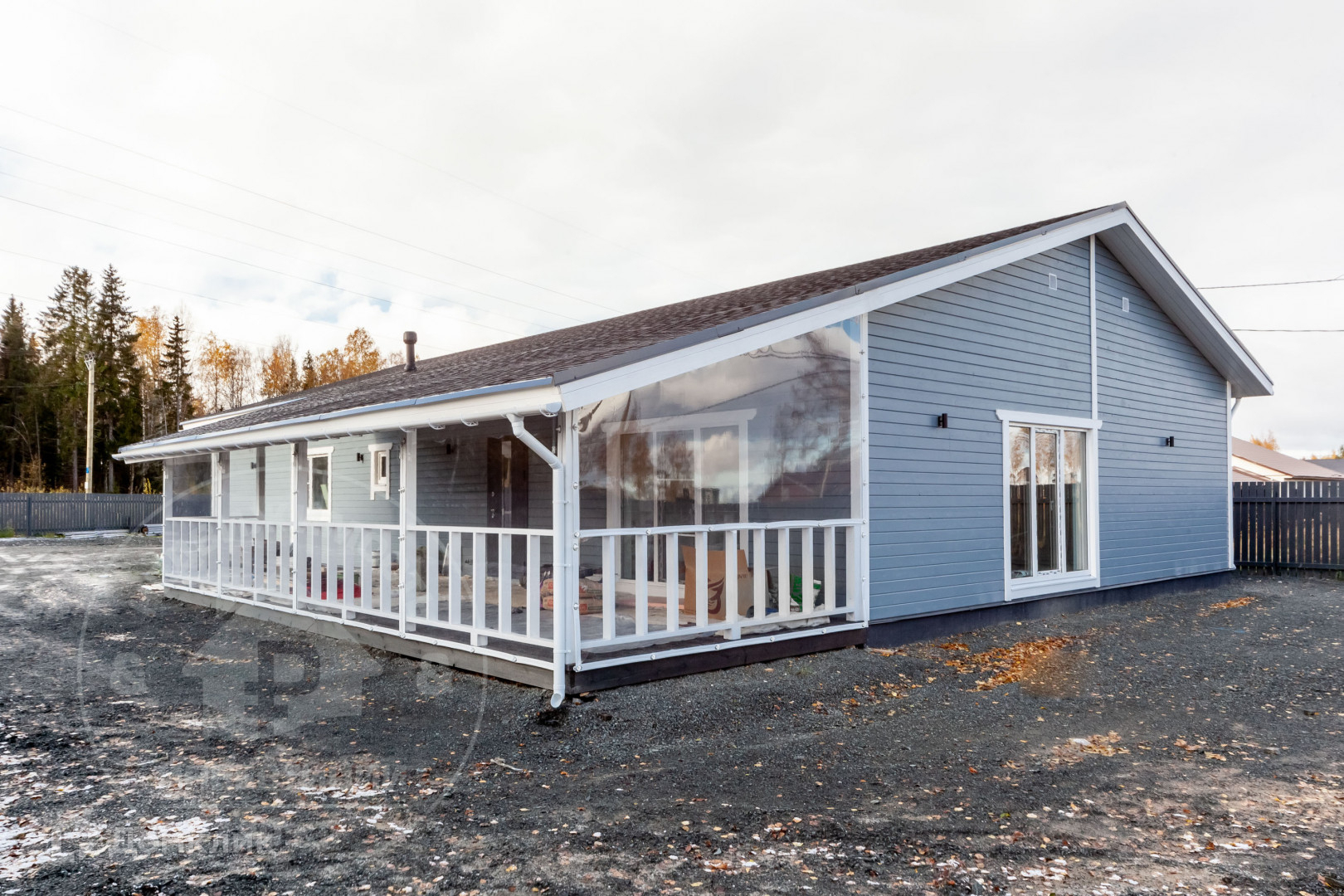 Одноэтажный дом 2023 года постройки, выполнен по технологии каркасного строительства, наиболее подходящий с учетом климата и ландшафта участка.
