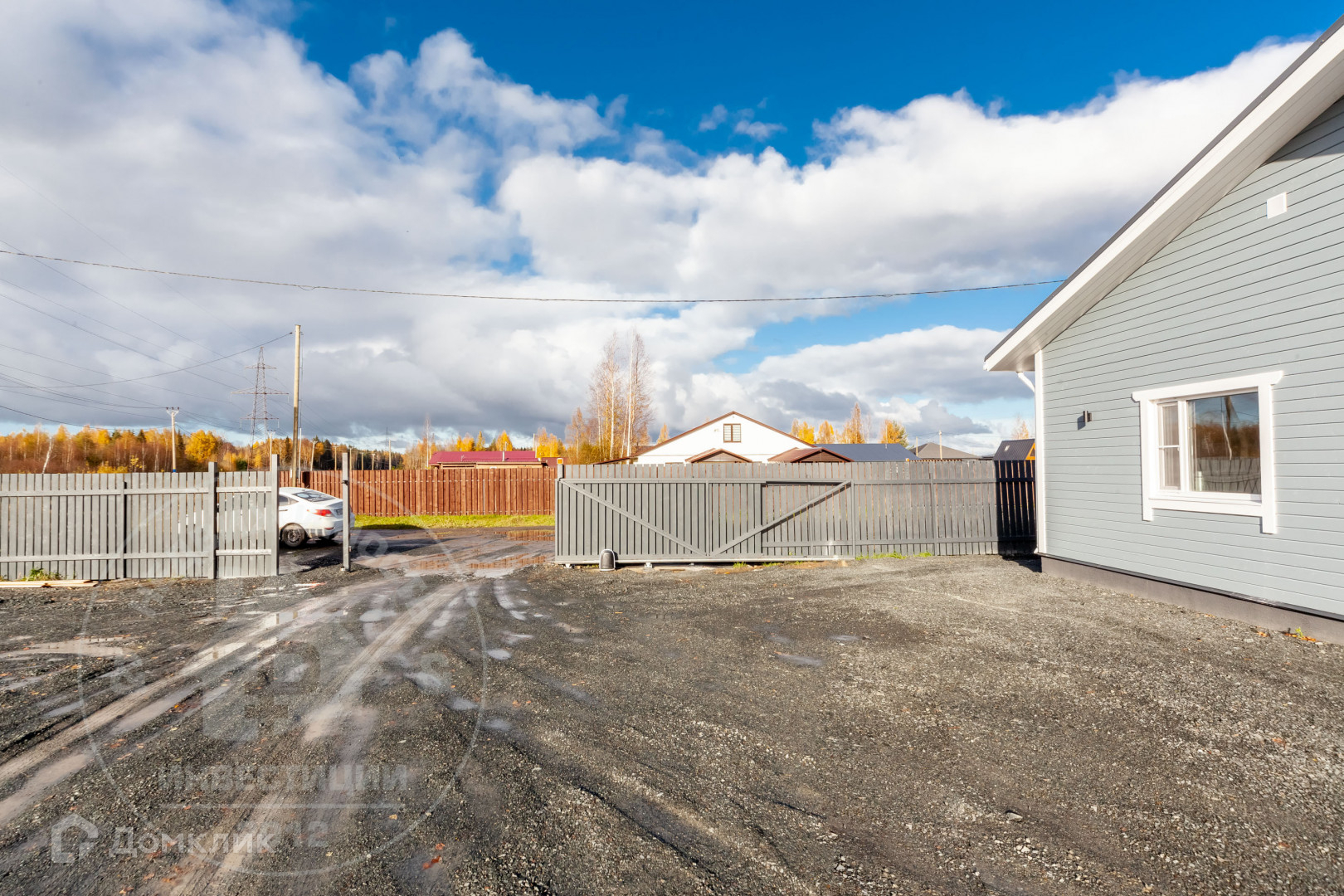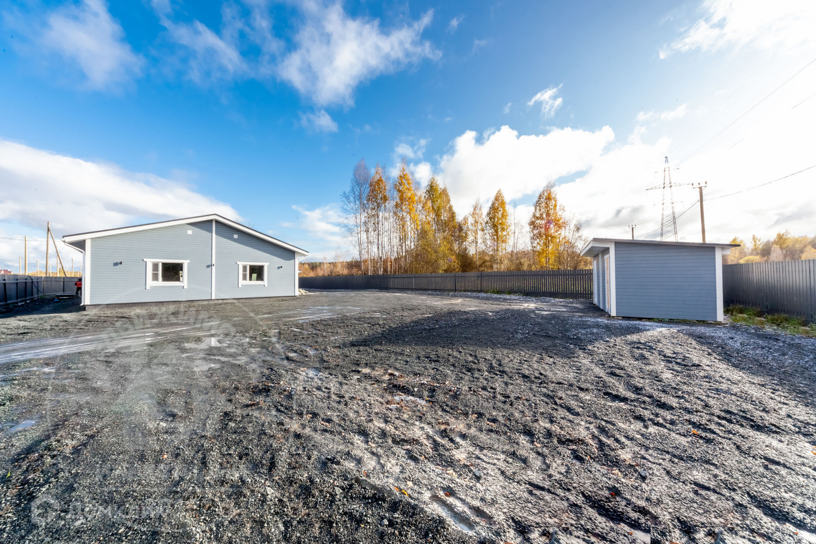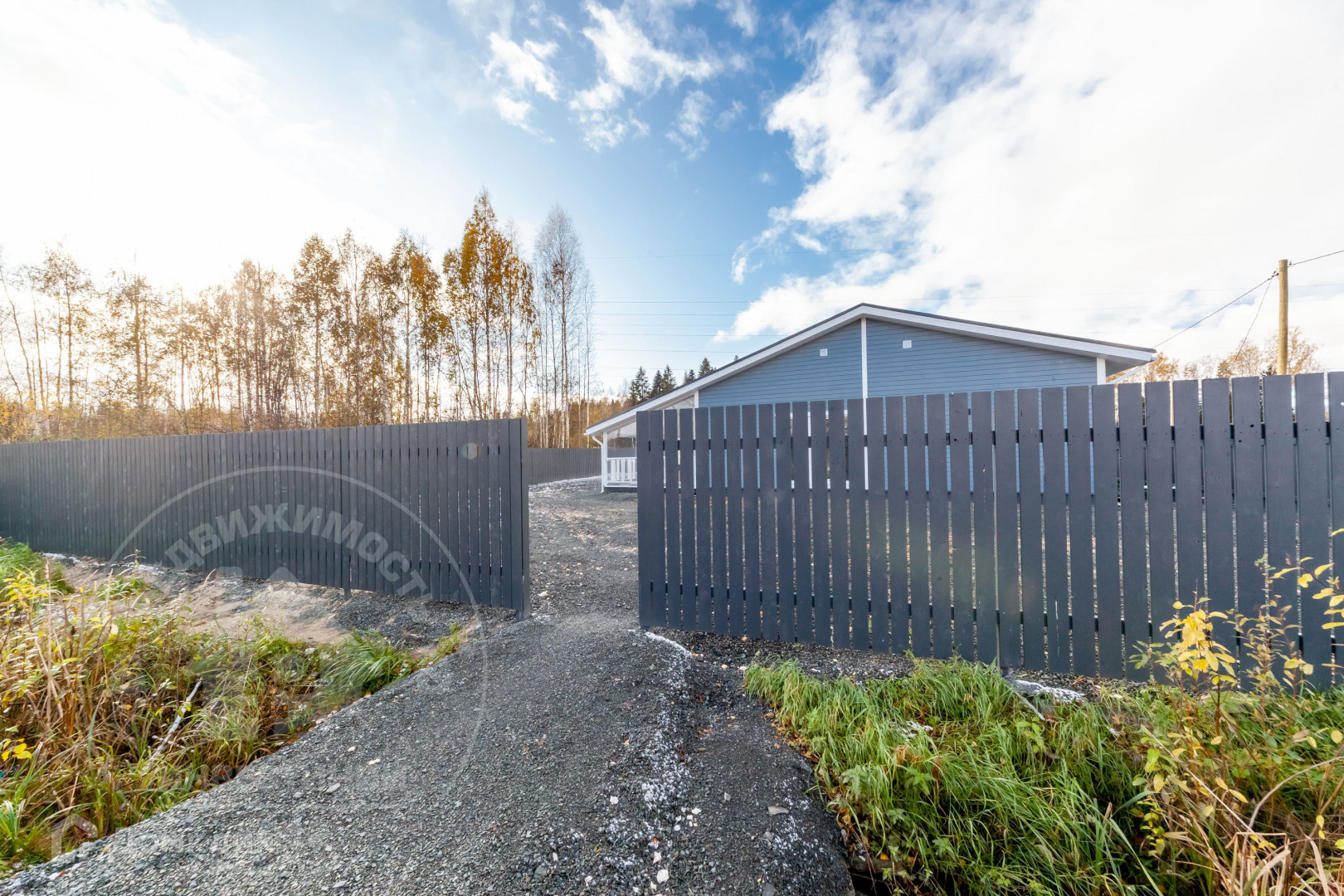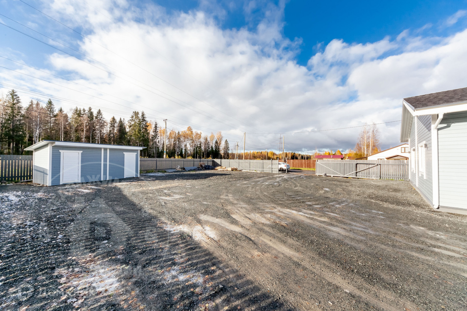 - Забор по всей границе участка, установлены откатные ворота - на пульте, две калитки.