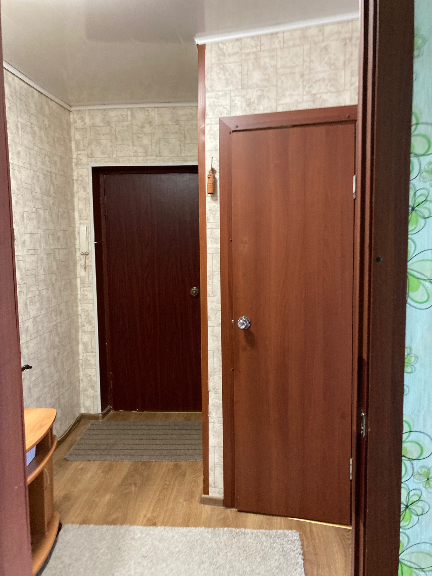 Расположена на 3 этаже кирпичного дома, балкон остеклен, установлены стеклопакеты.