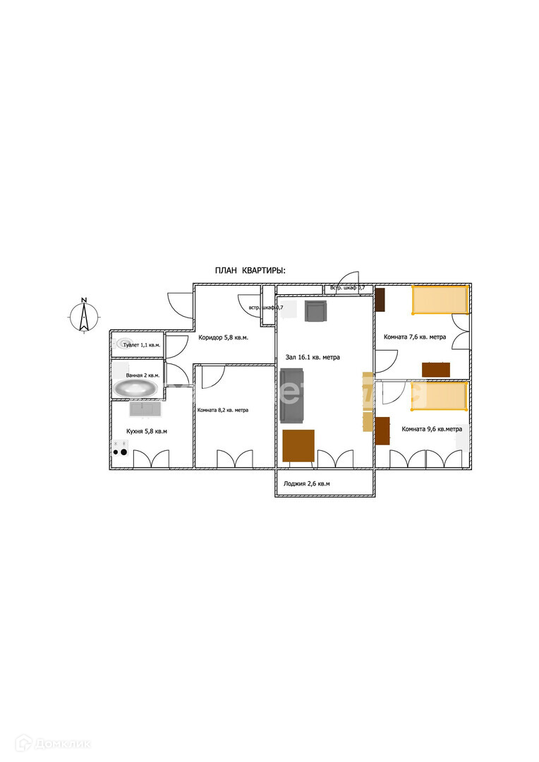 ❖ Комната 2: 16.1 м²;