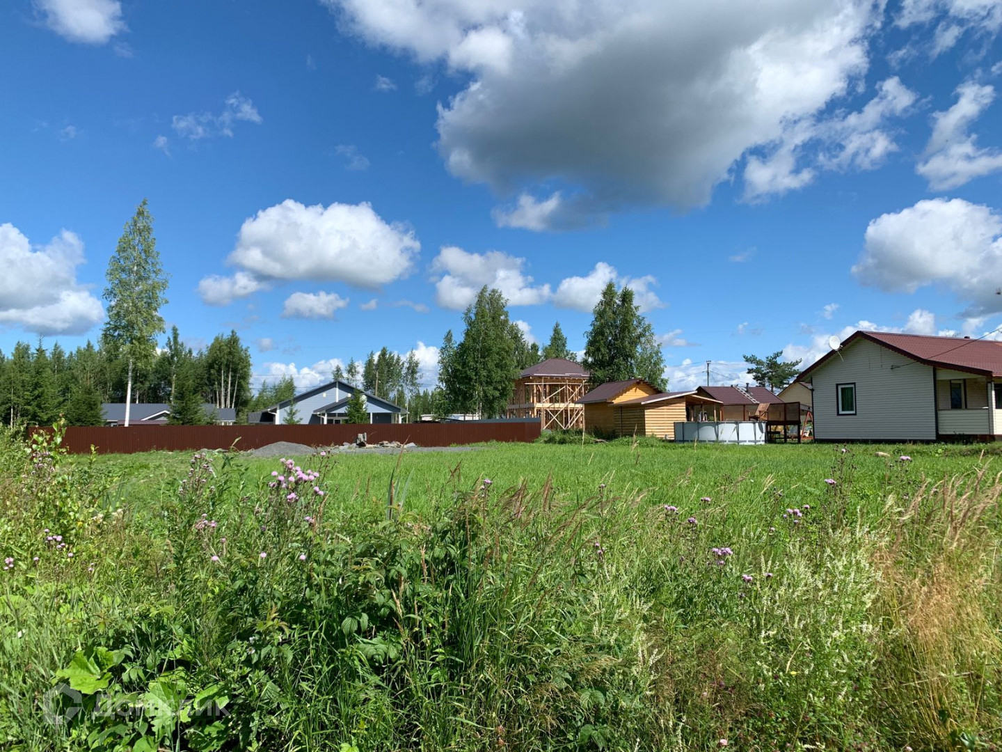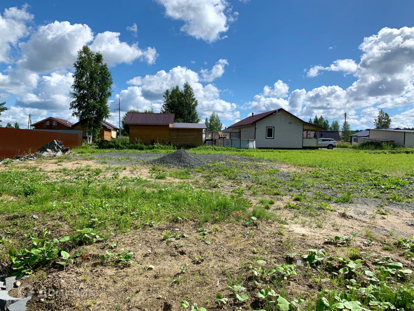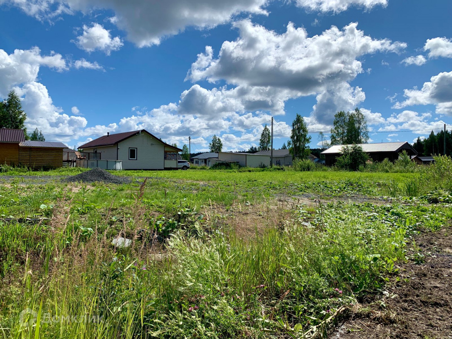 Участок отсыпан, очищен от мелколесья, по всему периметру сделан дренаж.