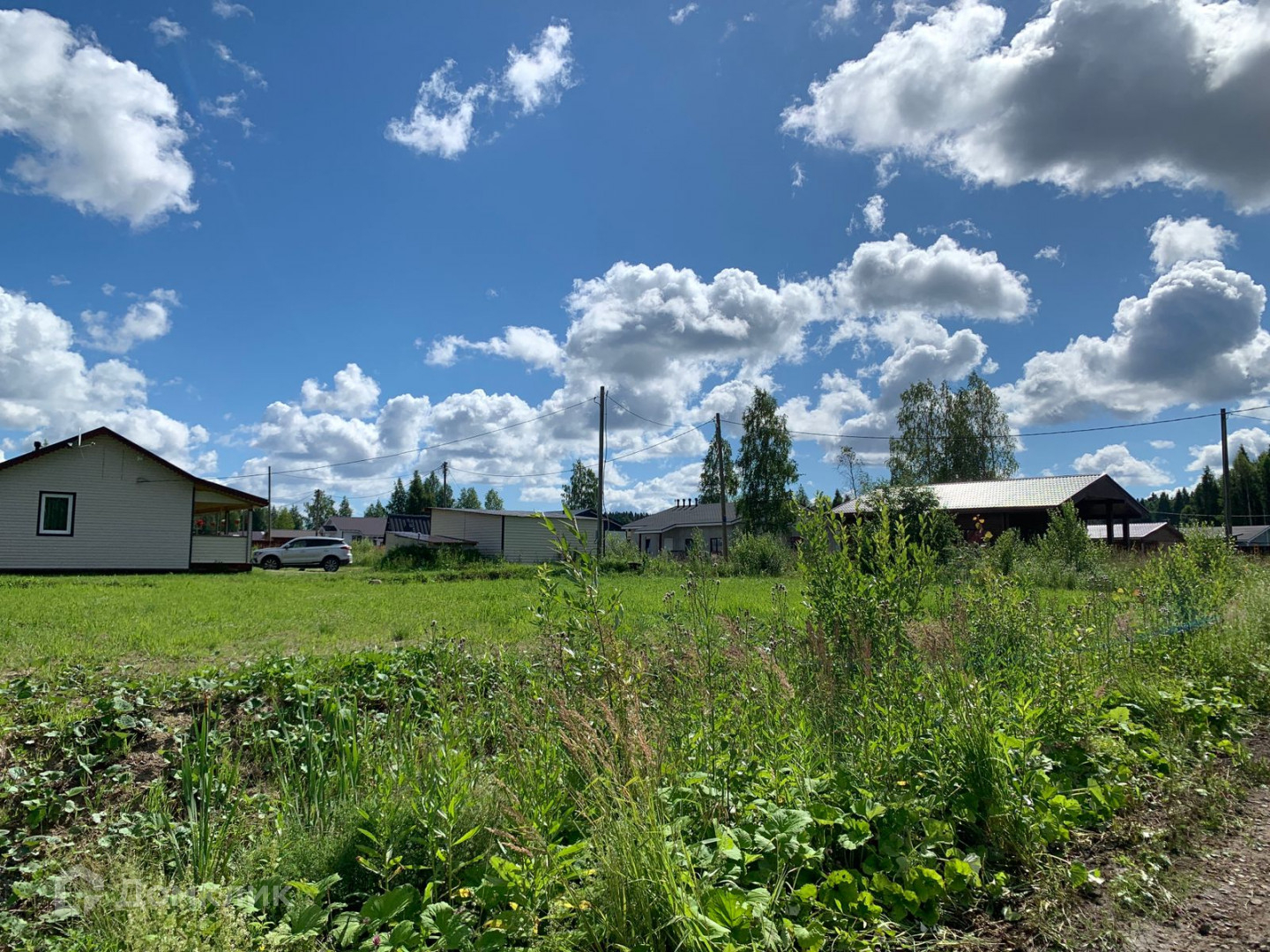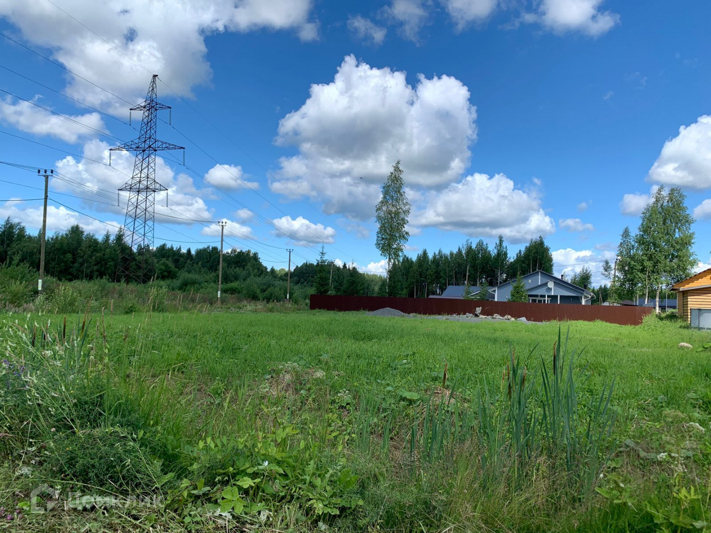 Вдоль участка идет линия с электричеством, на границе стоит столб, будет проводится природный газ.